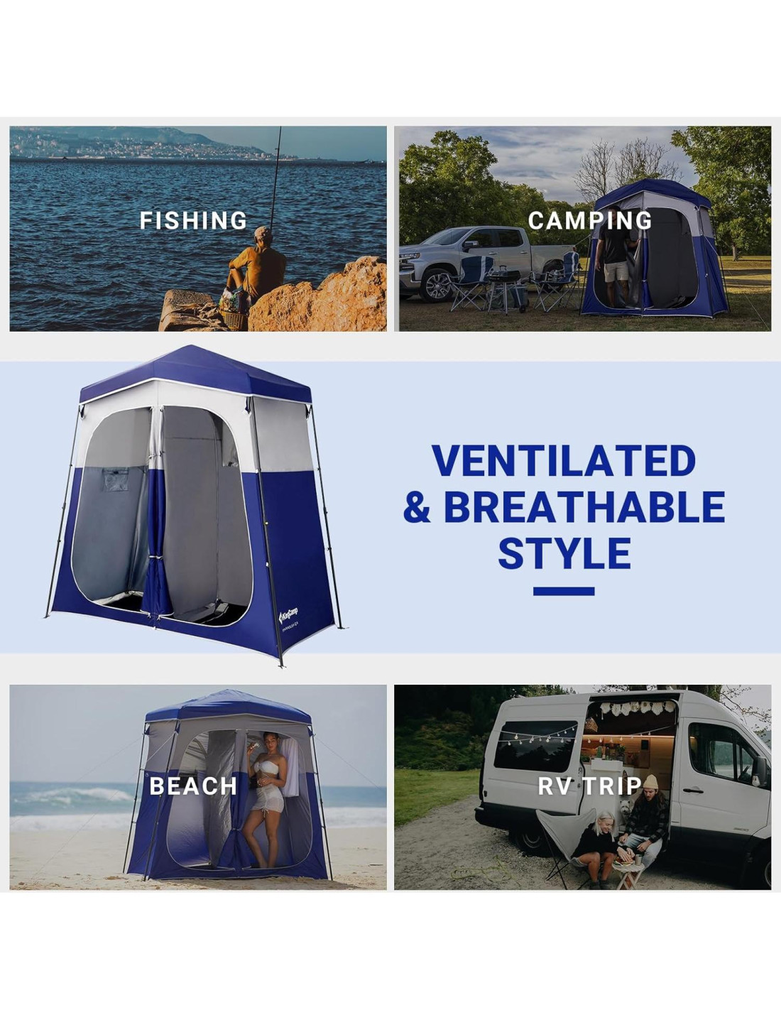 - [PROTECCIÓN DE PRIVACIDAD DE LA TIENDA] La tela completamente opaca asegura una privacidad óptima. El diseño del divisor incluye un partición en el medio, lo que la hace ideal para viajes familiares, acomodando a dos personas simultáneamente mientras se protege.
