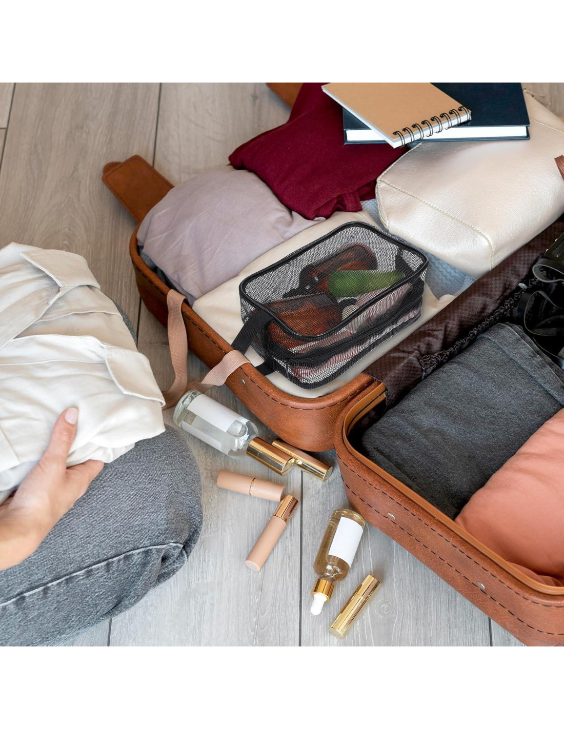 - VERSÁTIL Y CÓMODA: Ligera y fácil de llevar, esta bolsa de ducha de gimnasio es perfecta para varios entornos como baños públicos, playas, gimnasios y camping. El diseño de malla transparente te permite ver el contenido de un vistazo, convirtiéndola en una solución de almacenamiento versátil