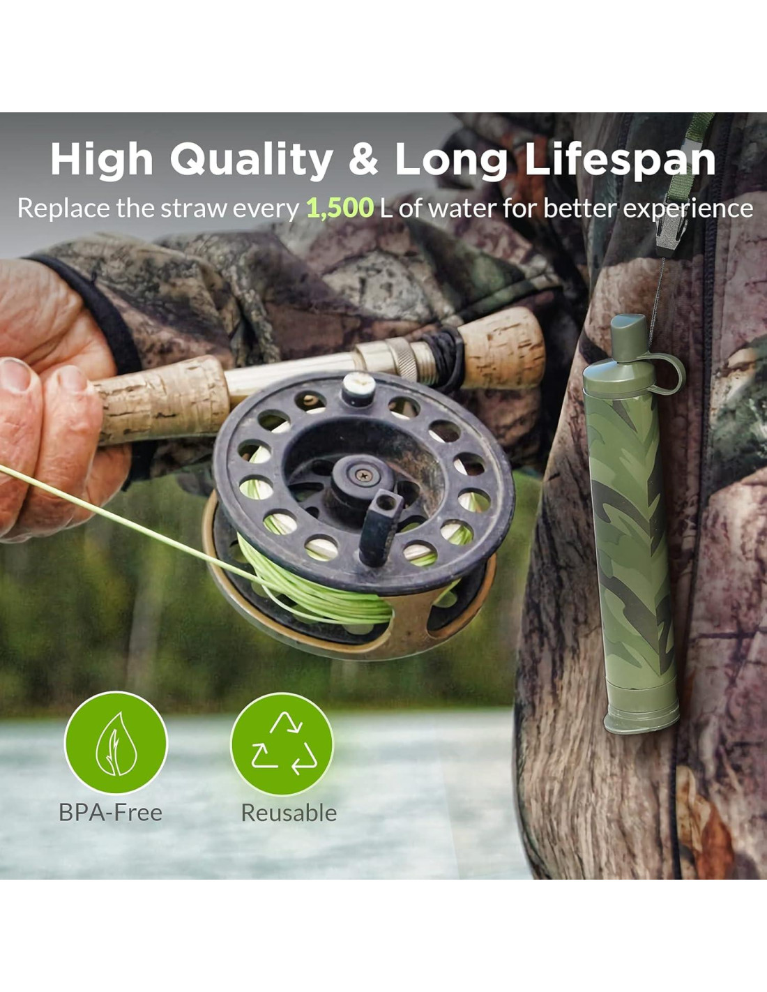 - Equipo de Supervivencia para Necesidades de Agua al Aire Libre - Certificado por NSF y SGS (Informe de Prueba NBF21-004693-01) y rigurosamente probado para cumplir con los estándares NSF/ANSI 42, 372, 401, este sistema portátil de filtración de agua asegura agua potable en segundos. Las certificaciones de NSF validan su capacidad para eliminar olores y partículas, mientras mantiene material libre de plomo. Ligero y compacto, está diseñado para una fiabilidad extrema durante senderismo, camping, viajes globales o emergencias, comprobado por la ciencia, confianza