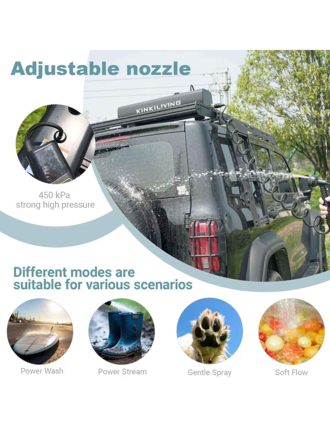 - [Flujo de Alta Presión Bajo Demanda de 450KPa] El sistema de presión líder en la industria elimina la suciedad y la arena obstinadas, entregando un flujo un 27% más fuerte que las duchas de camping estándar (probado a 450 kilopascales). Perfecto para enjuagar tablas de surf, botas embarradas o patas de mascotas.