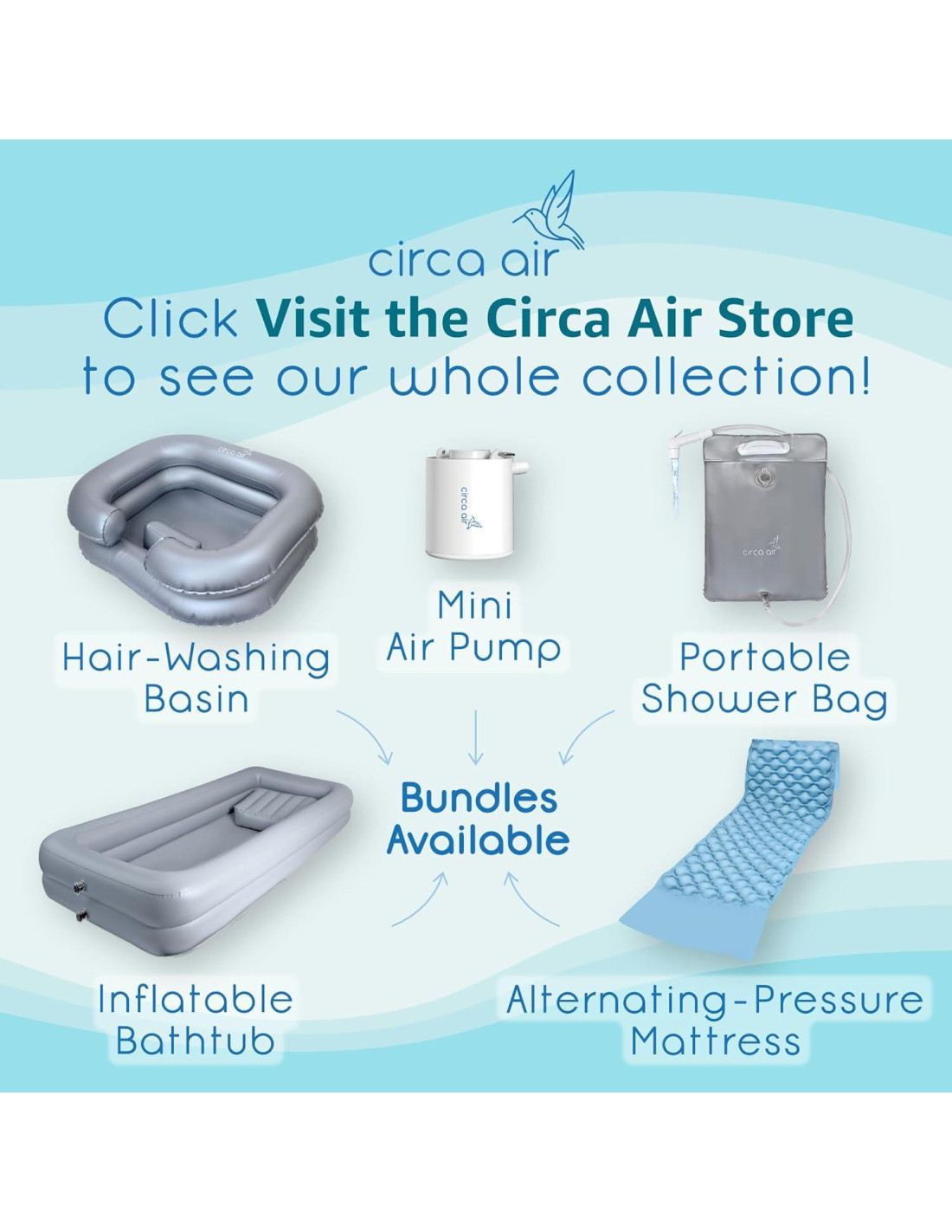 El sistema de ducha de cama de 2.5 galones proporciona un flujo constante de agua para un fácil lavado y enjuague del cabello. Es rápido de instalar y fácil de usar. Los usuarios apreciarán lo portátil, conveniente y libre de desorden que es. Es un artículo imprescindible para el lavado de cabello en la cama. ¡Úsalo con nuestra cuenca inflable para lavado de cabello Circa Air para una mejor experiencia de lavado de cabello! * La cuenca inflable para lavado de cabello Circa Air está disponible para compra por separado. Consulta nuestra tabla de productos a continuación para más detalles.