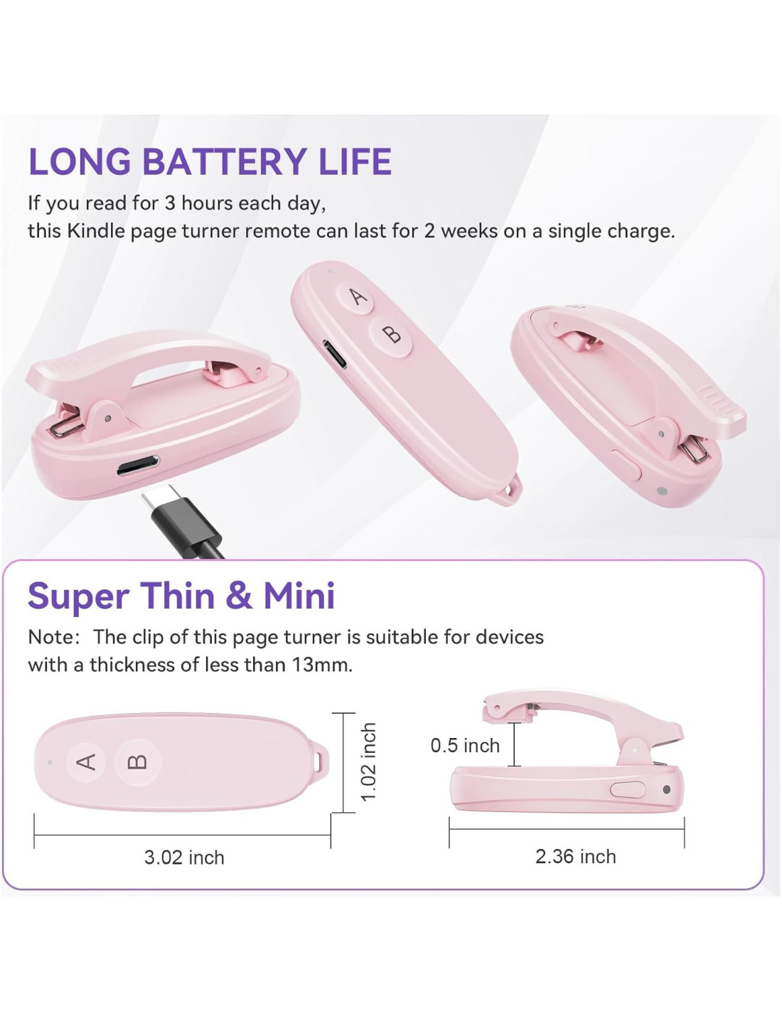 - Carga Tipo-C: Nuestro clicker de Kindle cuenta con una batería recargable incorporada, eliminando la molestia de reemplazar baterías. Viene con un cable de carga Tipo-C para una carga conveniente. Si lees durante 3 horas al día, una sola carga puede durar 2 semanas.