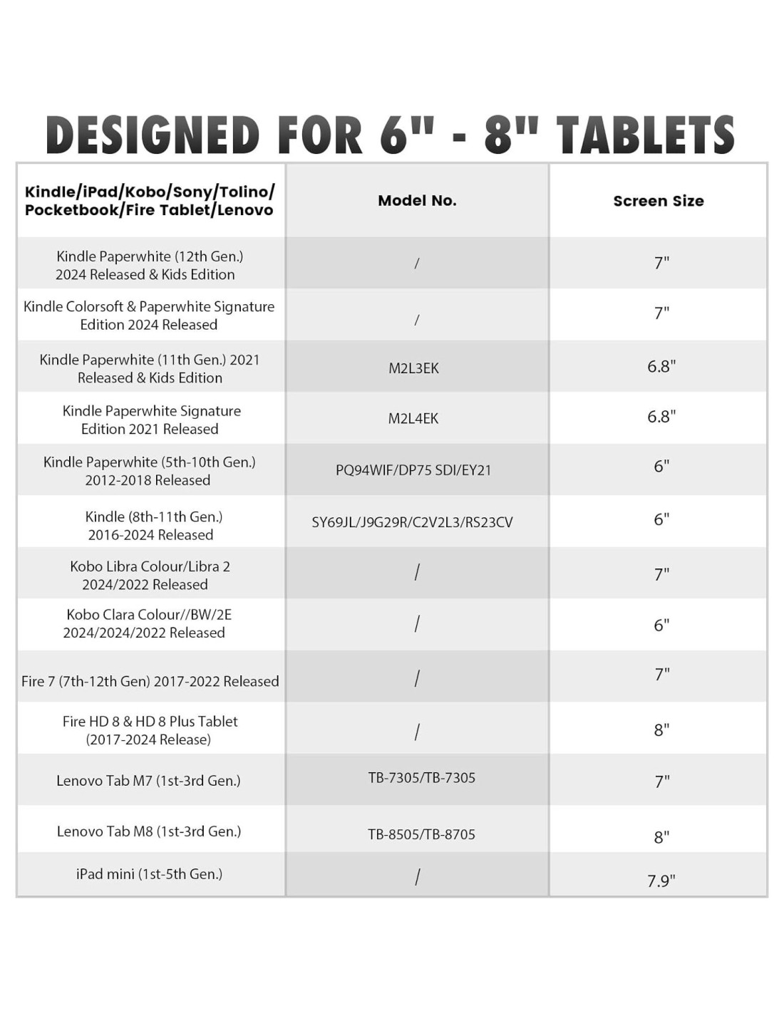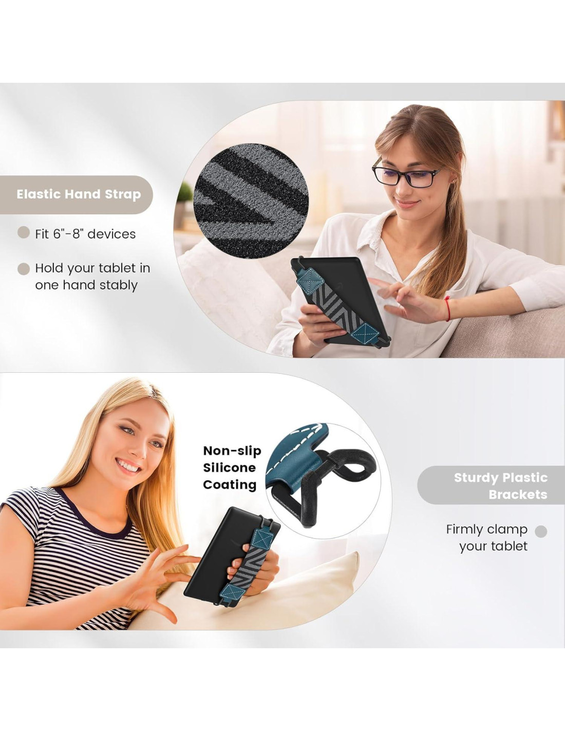 - Compatibilidad: Soporte de correa universal con alta durabilidad y elasticidad para adaptarse a E-Readers y tablets de 6 - 8" incluyendo Tablet Fire/Kindle/Kobo Nia/Kobo Clara HD/Lenovo tab M7/tab M8/Voyaga/Sony/tablet Tolino, etc. (Nota: Por favor mide tus lectores de e-books o tablets antes de comprar.)