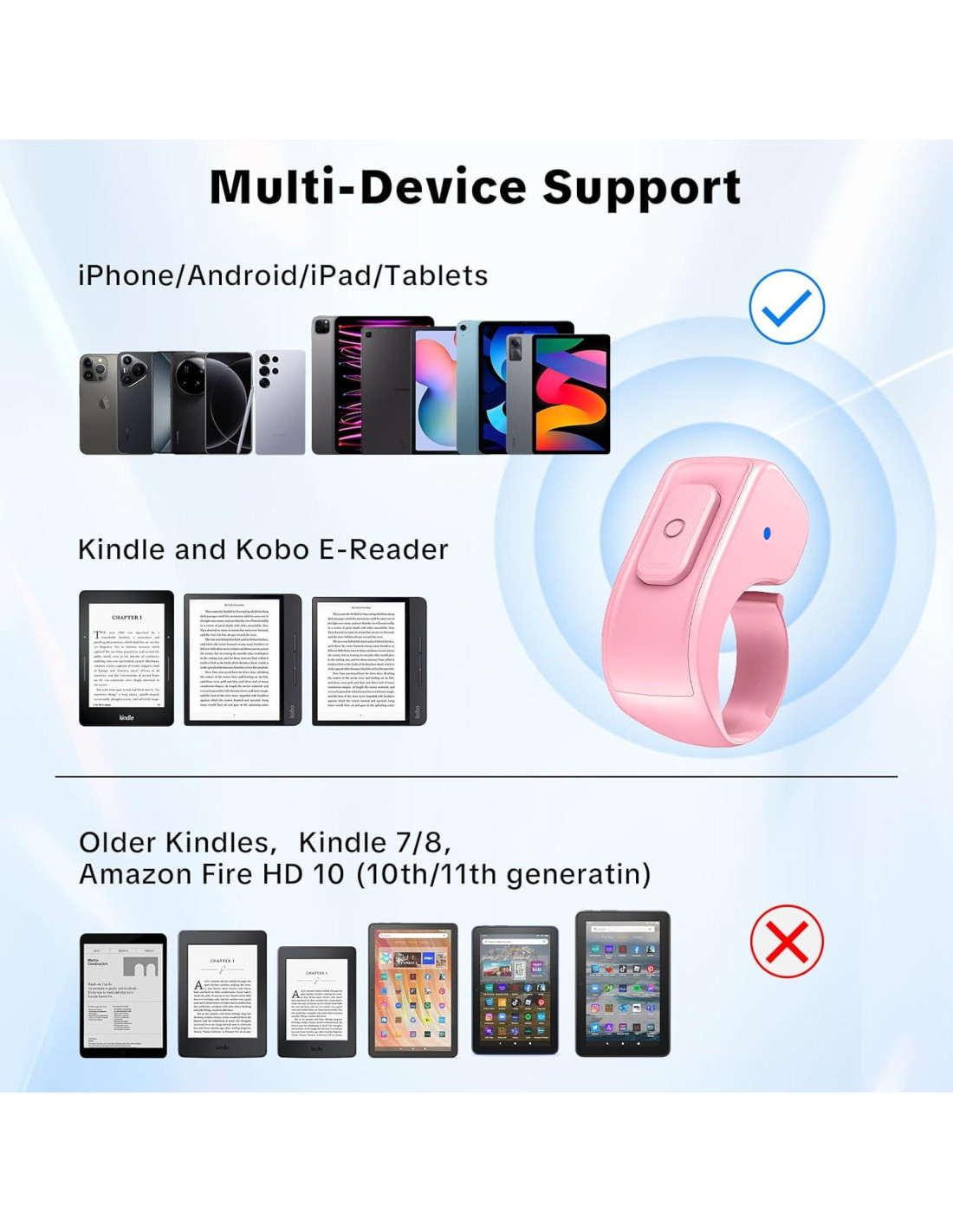 - Control Remoto Multifuncional y Larga Duración de Batería. ¡Más que solo un turner de página o accesorios para kindle! Doble función como obturador remoto inalámbrico para smartphones y cámaras - genial para selfies, fotos grupales o videos. La carga rápida tipo C toma solo 1.5 horas y dura semanas de lectura. El modo de ahorro de energía incorporado asegura un rendimiento confiable dondequiera que vayas.