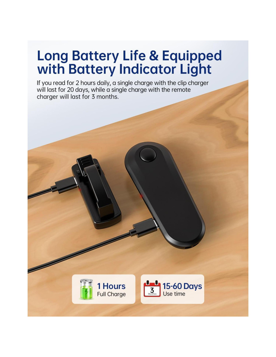- Batería de Larga Duración para Lectura Infinita: Disfruta de lectura ininterrumpida durante hasta 20 días con el clip o hasta 3 meses con el remoto. Con nuestro cambiador de página bluetooth para Kindle, nunca te preocuparás por perderte en una historia solo para que la batería se agote. Carga rápidamente y sigue leyendo sin interrupciones.