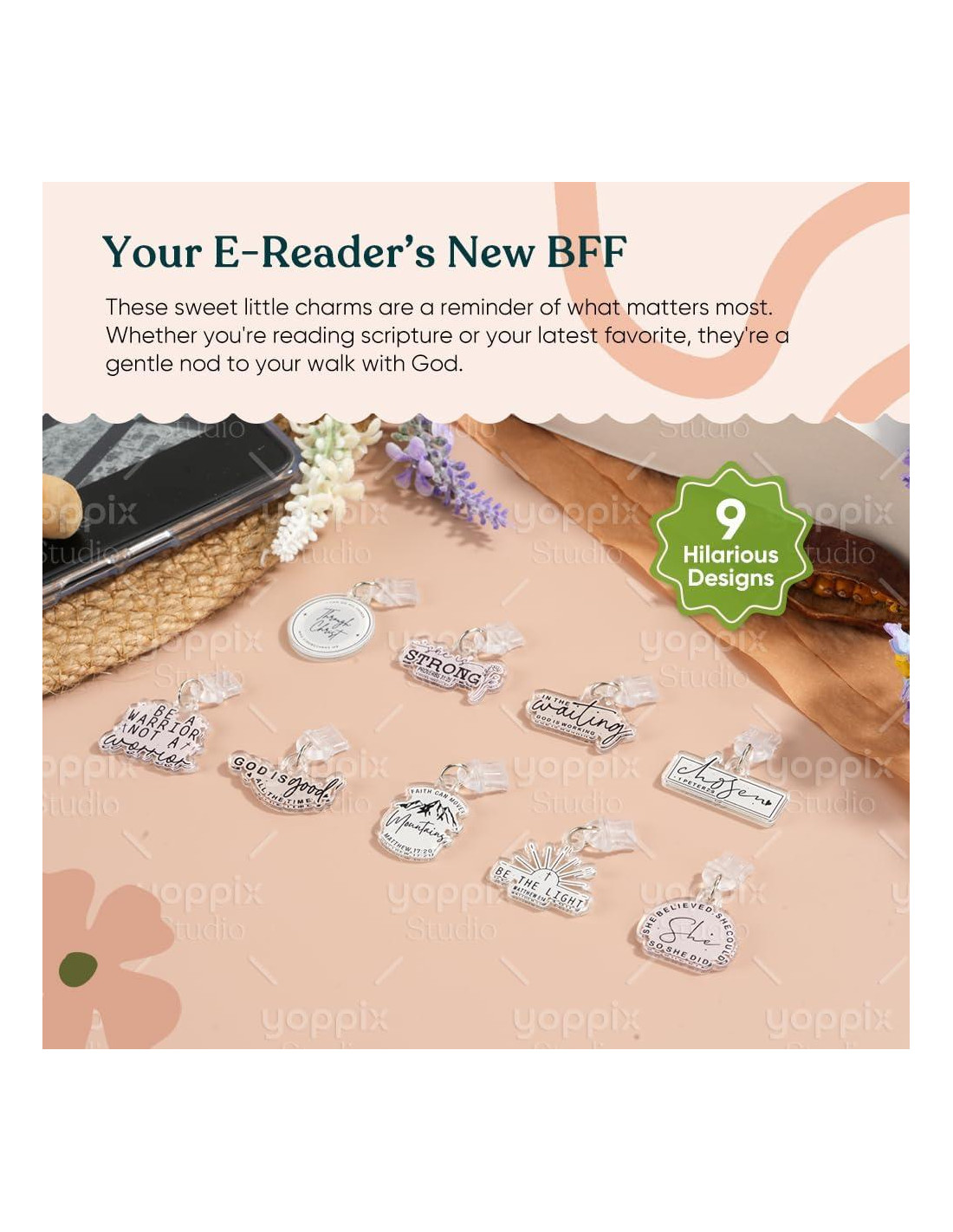 YOPPIX 9PCS Encantos para E-Reader, Sobre Tema Cristiano Encanto de Tapón de Polvo Compatible con Puerto de Carga Tipo C, Regalo para Amantes de Libros Lectores Hombres Mujeres Maestros Estudiantes, Accesorios para E-Reader