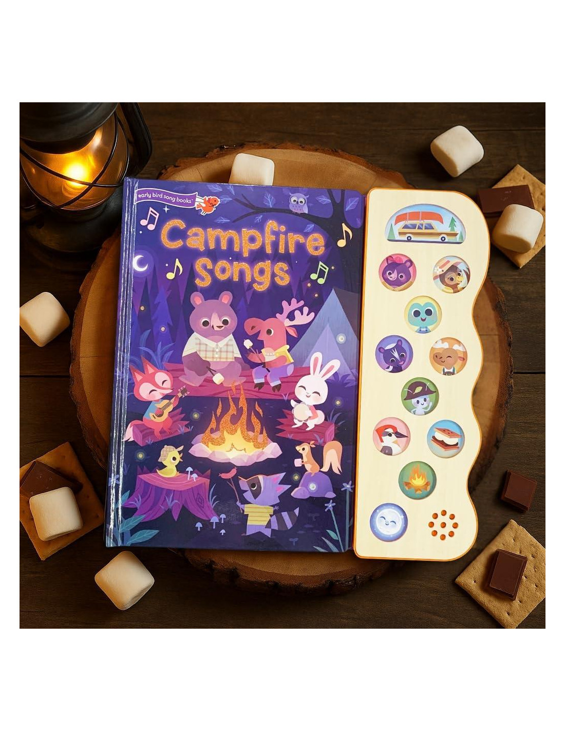 Los niños pequeños y los preescolares pueden cantar junto con las melodías clásicas de canciones de fogata en este encantador libro de canciones. Con un incrustado de madera y una construcción resistente, que le da un toque vintage, este libro seguramente deleitará mientras enseña una apreciación tanto por la música como por el tiempo juntos. Perfecto para los más pequeños (y sus adultos) para cantar y bailar, Canciones de fogata seguramente será un favorito familiar. Sigue las letras del libro para las melodías que tocan los botones. Encuentra 10 canciones clásicas de fogata y exploración acompañadas de adorables ilustraciones. Las canciones incluyen: John Jacob Jingleheimer Schmidt, El oso cruzó la montaña, Haz nuevos amigos, la canción de los s'mores y más. Un ícono en cada página corresponde con el botón de melodía correcto, proporcionando una oportunidad para practicar la coincidencia y las habilidades motoras finas. Todos nuestros libros de Canción del pájaro madrugador están diseñados para que los curiosos pequeños exploren solos o con su adulto. Tenga en cuenta que los botones de audio reproducen melodías solamente, sin voz cantada.