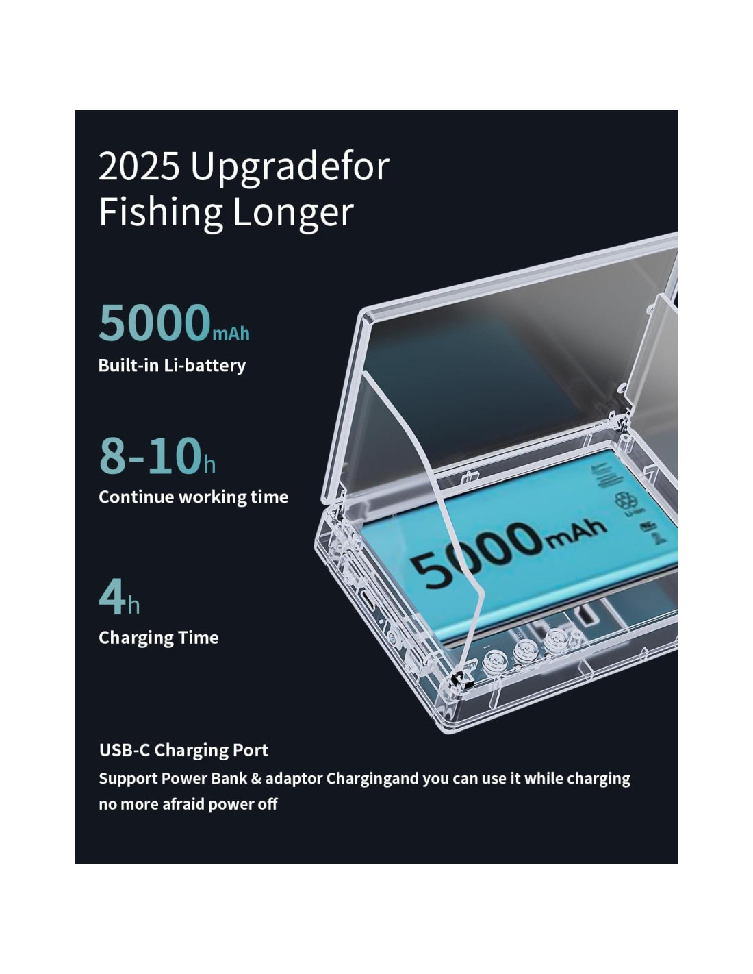 - Batería de Litio de 5000 mAh - Alimentada por una batería recargable de 5000mAh, nuestra cámara submarina para pesca ofrece hasta 8 horas de uso continuo. Disfruta de una pesca ininterrumpida y explora las profundidades sin preocupaciones con tu cámara de pesca confiable.