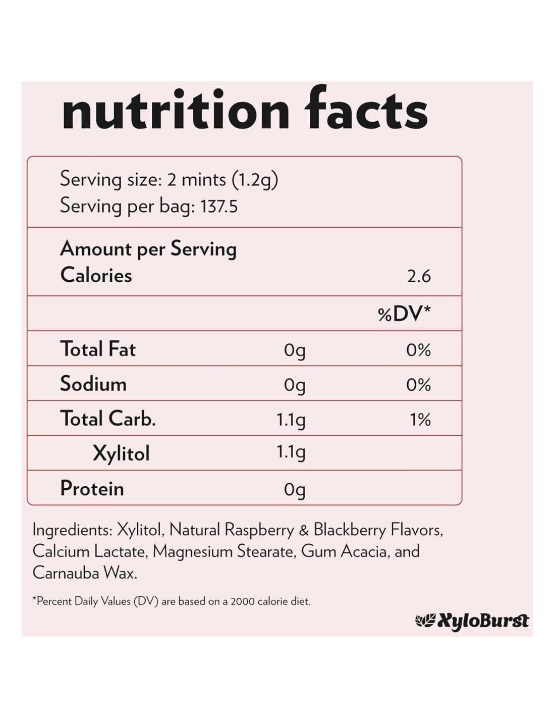 - MENTAS DE XYLITOL REFRESCANTES - Disfruta del sabor limpio y vigorizante de las mentas XyloBurst, endulzadas exclusivamente con 100% xilitol. Al igual que nuestro chicle de xilitol, estas mentas sin azúcar promueven la producción de saliva, refrescan el mal aliento y mejoran la salud de las encías y los dientes.