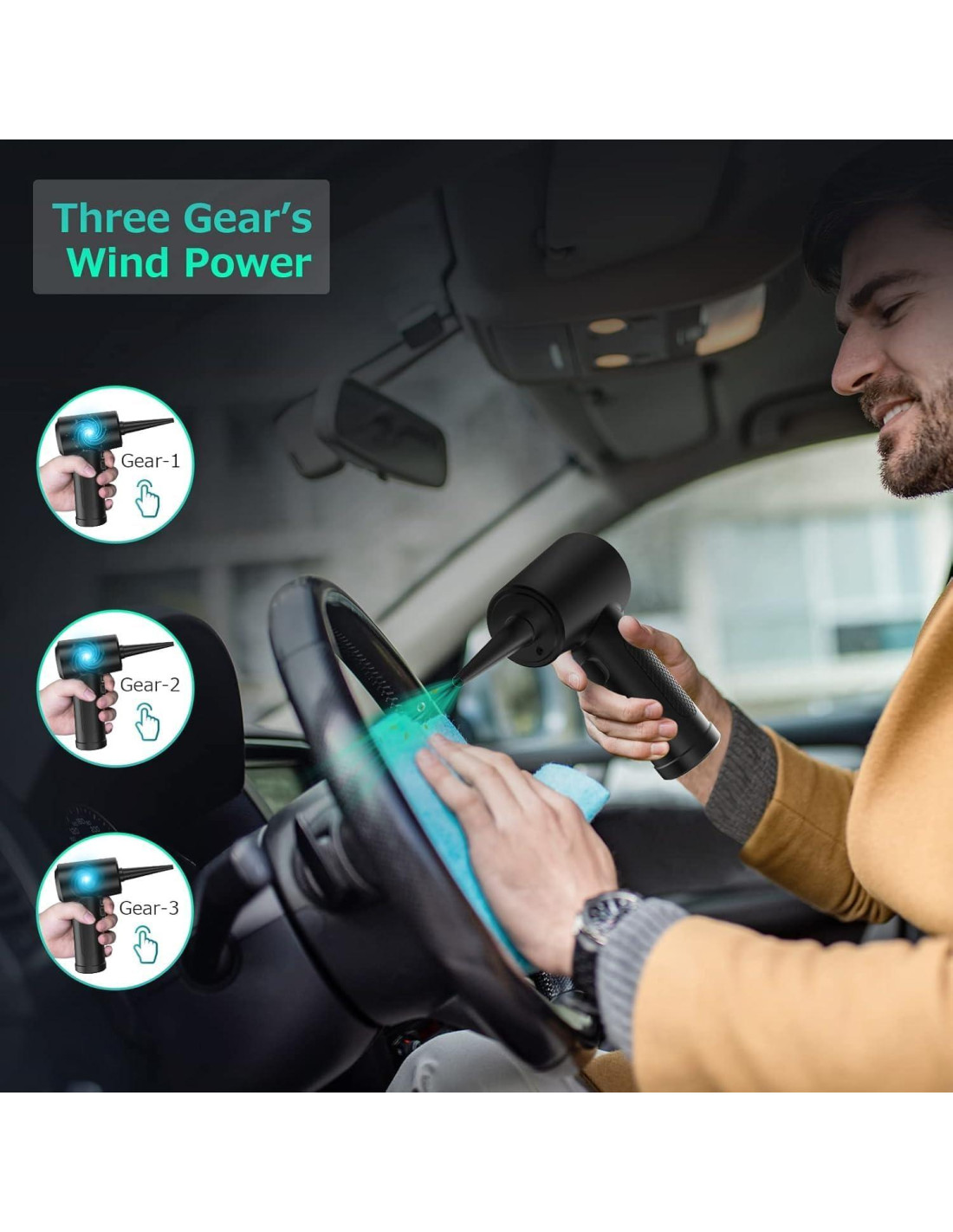 - Soplador de aire - Diseño de Carga USB: Diseño de protección de batería del soplador de aire eléctrico, no cargues cuando la máquina acaba de terminar de usar, la temperatura de la batería es demasiado alta, por favor espera diez minutos para enfriar antes de cargar.