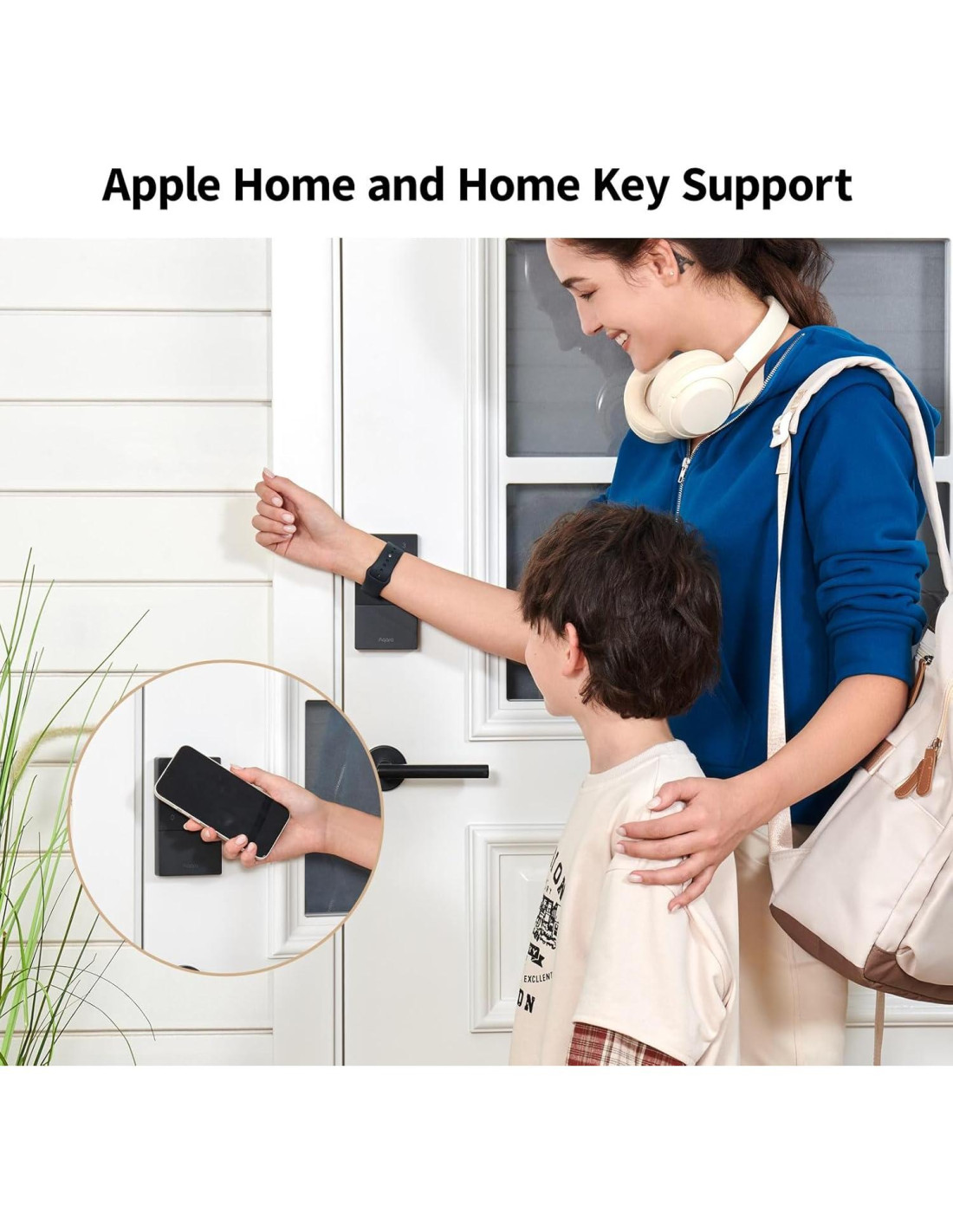 - [Soporte para Apple Home y Apple Home Key] La U50 es una cerradura de puerta inteligente que está completamente integrada en Apple Home. Se puede desbloquear con el Apple Home Key simplemente tocando un iPhone o Apple Watch, incluso cuando el iPhone o Apple Watch está sin batería. Además, puedes gestionar y compartir el acceso a la puerta para tus invitados en Apple Home. Con un hub Aqara compatible con Matter, cuenta con soporte para Matter. (Consejo: Después de agregar la cerradura de puerta a la app Aqara Home, solo la huella dactilar o contraseña del administrador puede reiniciar la cerradura de puerta.)