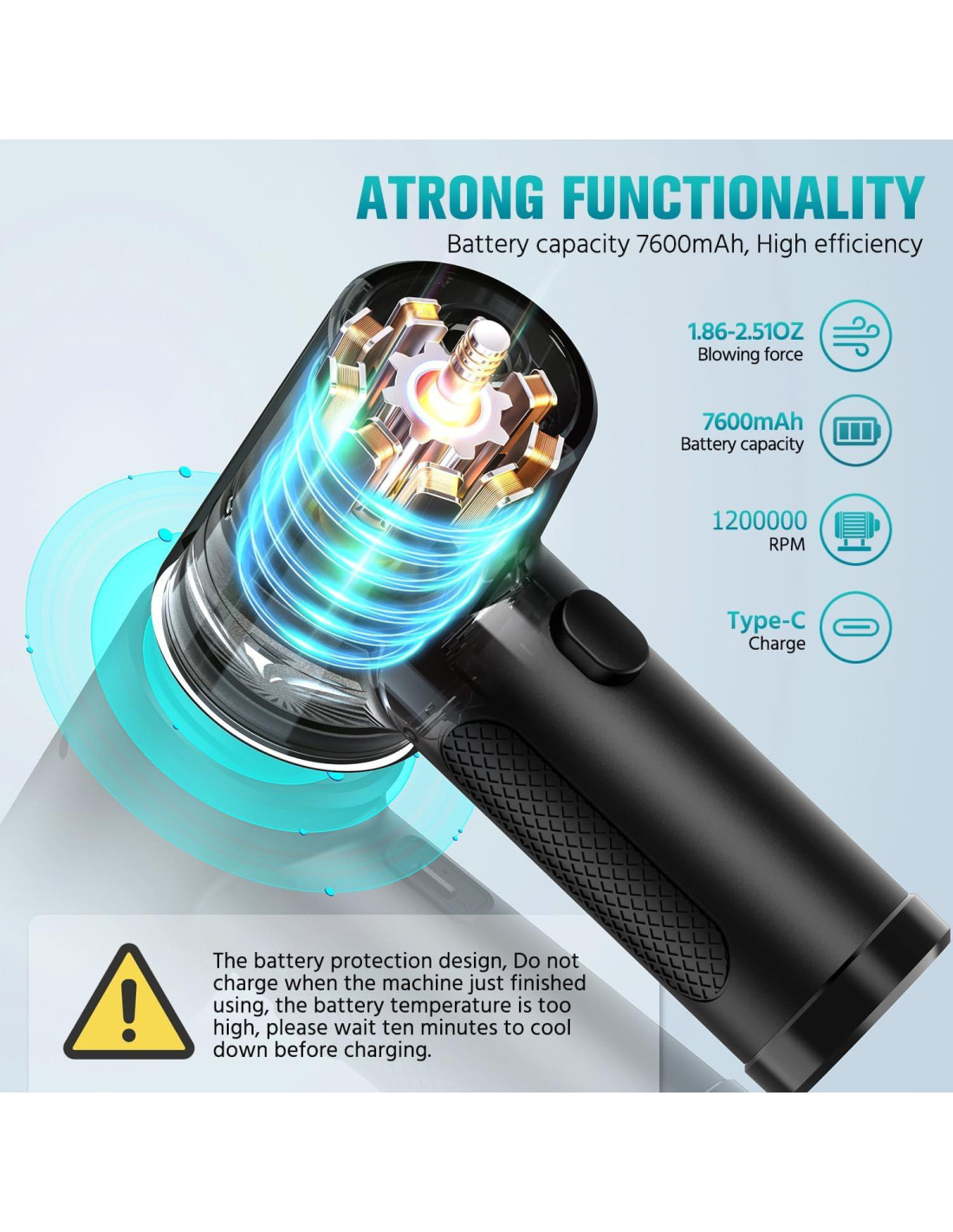 - [Limpieza profunda poderosa] El soplador Jet Dryer tiene una velocidad máxima de 120,000 RPM, el viento super fuerte puede limpiar el polvo en los equipos electrónicos, mantener tu equipo limpio. Limpia escombros y polvo de cualquier dispositivo electrónico. Menor consumo de energía, mayor vida útil y alivio del ruido mientras mantiene una fuerte potencia.