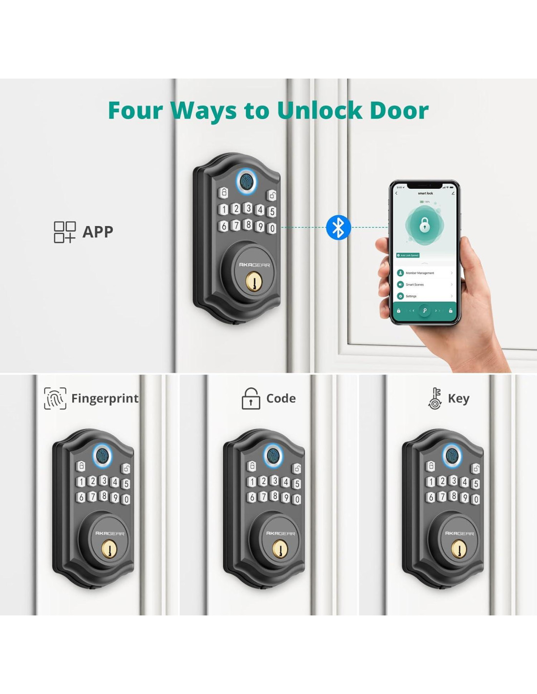- Fácil de usar para entrada sin llave: La cerradura inteligente de huellas dactilares DS10 Pro de AkaGear ofrece una comodidad y características de seguridad inigualables. Con hasta 50 huellas dactilares de usuario y 300 códigos de acceso, cree códigos temporales para invitados. Además, viene equipada con dos llaves de repuesto para miembros de la familia, mejorando aún más la accesibilidad y la tranquilidad.