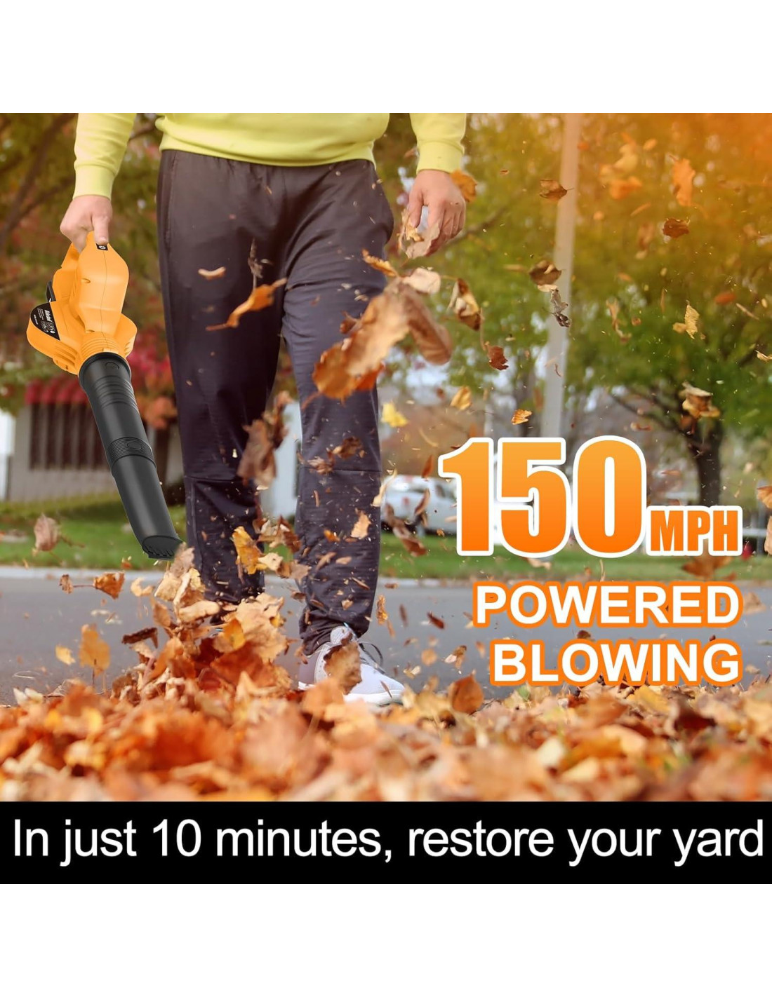 - Velocidad de Viento Poderosa: Con una velocidad de viento máxima de 150 MPH (241,4 km/h), equivalente a la fuerza de un huracán, este soplador de hojas ligero puede despejar rápidamente y de manera efectiva las hojas húmedas y los escombros acumulados. En comparación con los sopladores de menor velocidad, este dispositivo te permite completar tus tareas de limpieza del jardín más rápido y de manera más eficiente.
