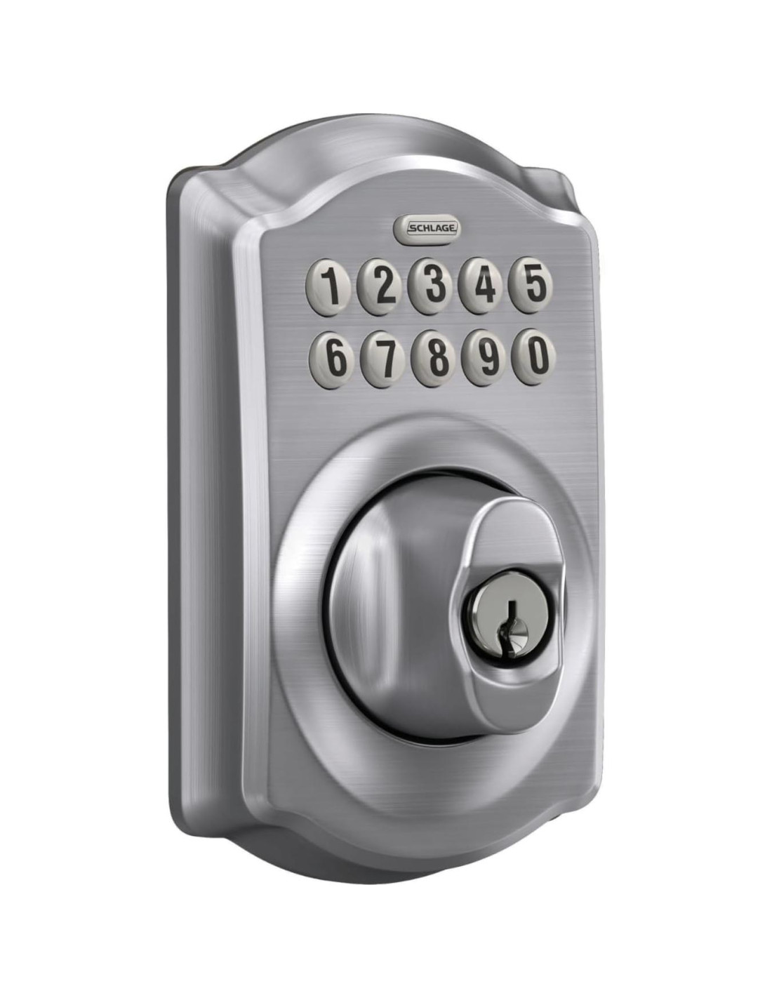 La Cerradura Electrónica con Teclado Schlage permite bloquear y desbloquear su puerta sin usar una llave. Ideal para puertas delanteras y traseras, así como puertas de entrada de garaje y oficinas en casa, esta cerradura electrónica proporciona seguridad y simplicidad para todo el hogar. Los botones de goma de silicona, resistentes al desgaste, con retroiluminación LED hacen que el acceso sea seguro y fácil. Confíe en su hogar a Schlage, fabricantes de herrajes de puerta de alta calidad e innovadores durante más de 100 años.