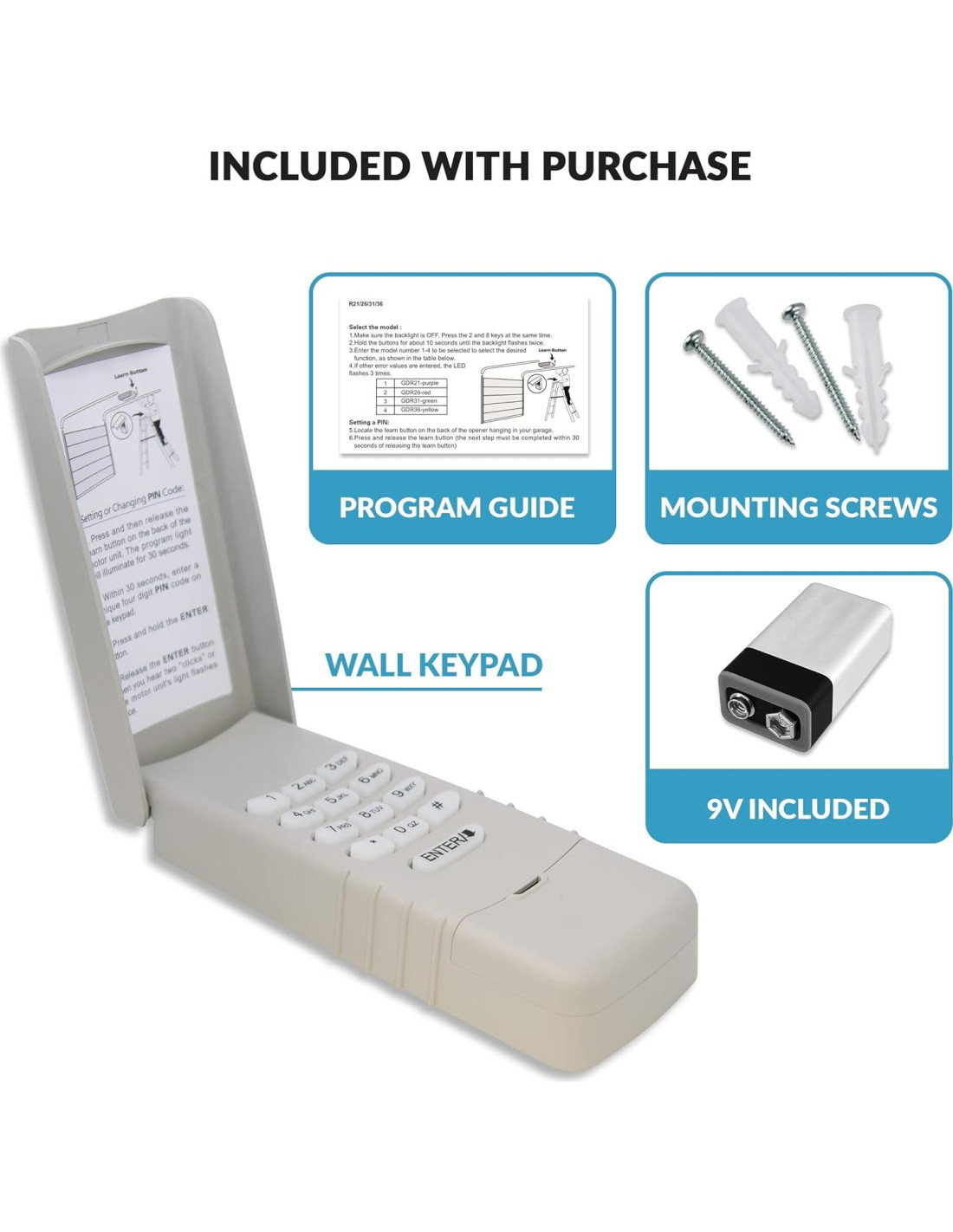 - INSTALACIÓN RÁPIDA Y FÁCIL: La auto-programación está disponible y se puede hacer desde la comodidad de tu hogar. Se necesita un operador de puerta con un botón de aprendizaje púrpura para configurar el control remoto de la puerta de garaje. Viene con instrucciones fáciles de seguir. Soporte técnico gratuito está incluido con cada compra para ayudar a solucionar problemas si es necesario. "Añadir al carrito" para comprarlo ahora mientras haya existencias.