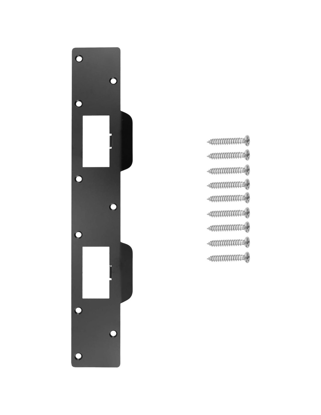 - La placa de golpe refuerza el marco de la puerta y proporciona protección adicional contra entradas forzadas para máxima seguridad
