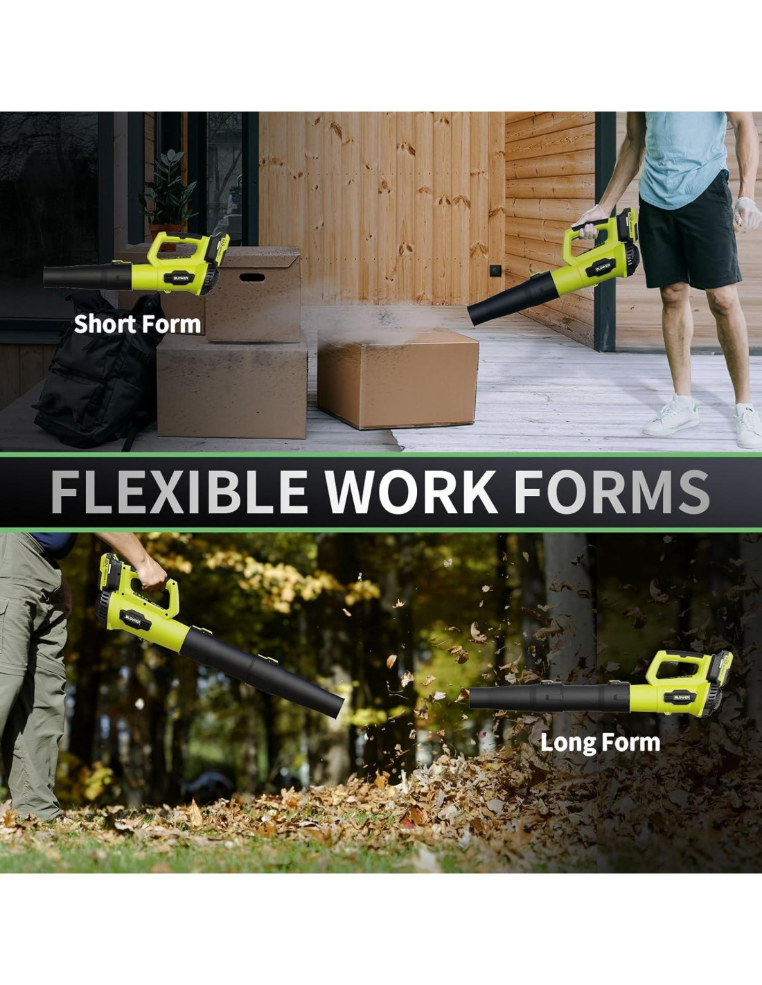 - [Diseño Ligero y Amplios Usos] El soplador de hojas con batería pesa solo 1.81 kilogramos, puedes levantarlo fácilmente con una mano. El diseño desmontable facilita el almacenamiento y es conveniente para llevar al aire libre. El soplador de hojas LEAPUL se puede usar ampliamente en la vida diaria, ya sea hojas en el jardín, terraza, o polvo y basura en el garaje, porche, puede ser soplado por este potente soplador de hojas inalámbrico