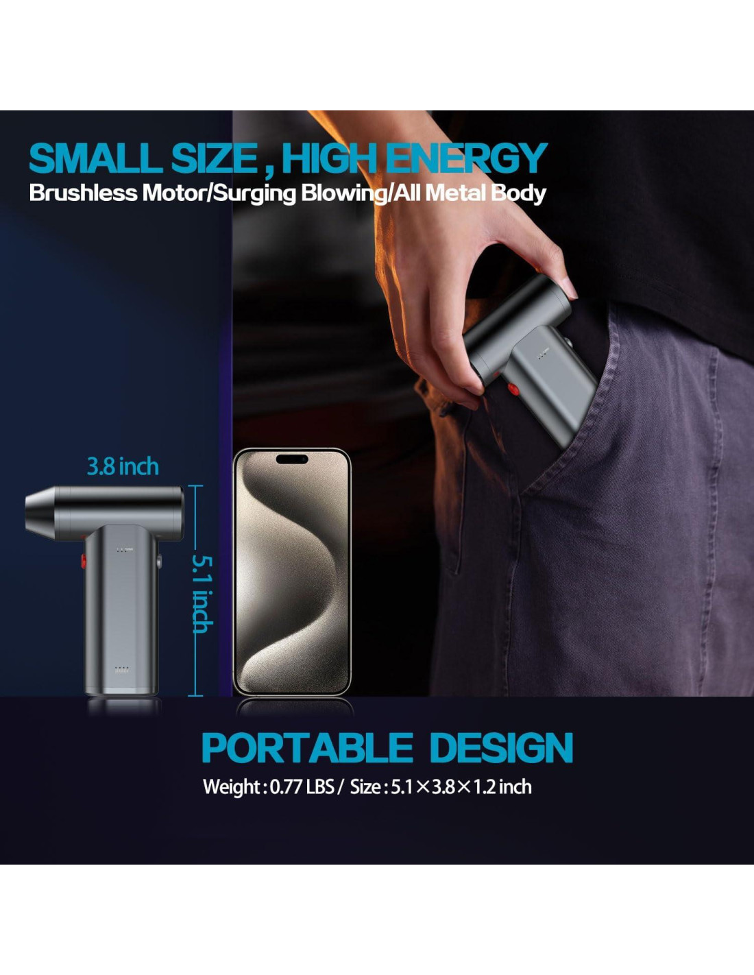 - [Duración de Batería Potente] Carga rápidamente a través de Type-C (5V 2A), completamente en 2-3 horas. Disfruta de hasta 1 hora de uso continuo del soplador de aire comprimido a máxima velocidad. Presenta tecnología de velocidad de viento estable e indicador luminoso