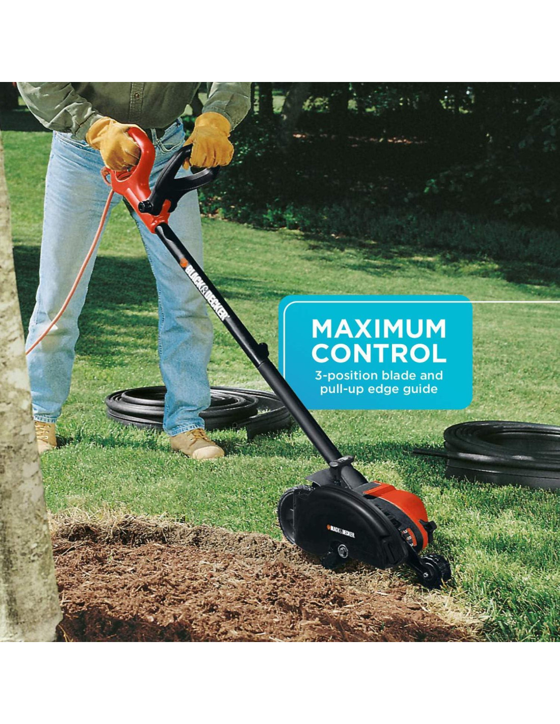 Potencia a través de un denso crecimiento y excava zanjas limpias alrededor de los parterres con esta bordeadora y zanjadora eléctrica BLACK+DECKER de dos en uno. Alimentada por un motor eléctrico de alto par de 12 Amp, la bordeadora y zanjadora cuenta con una cuchilla de 7-1/2 pulgadas (19.05 cm) con tres profundidades de cuchilla para un control máximo. La guía de borde retráctil te permite excavar zanjas limpias y cortar líneas limpias con confianza, y una puerta de fácil acceso en la protección facilita la limpieza. Excava alrededor de parterres, árboles y otros bordes, instala cercas de ignición al aire libre o cercas invisibles para perros, y bordea superficies duras como entradas, aceras y patios, todo con una sola herramienta. El agarre asistido derecho e izquierdo te brinda capacidades adicionales de manejo. Para un cuidado del césped de alta potencia y bordes y líneas limpias, no busques más.