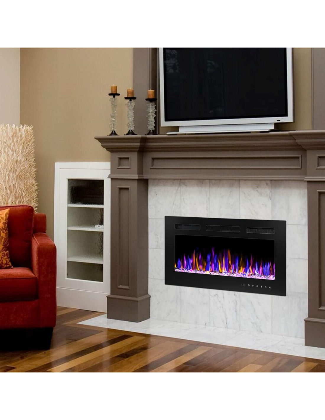 - ESPECIFICACIÓN: Dimensiones 30"L*17"W*4"D, configuración de calor 750W/1500W; El paquete incluye -1x chimenea eléctrica, 1x tronco de carbón, 1 paquete de piedras de cristal, 1x manual de instalación y accesorios de hardware.