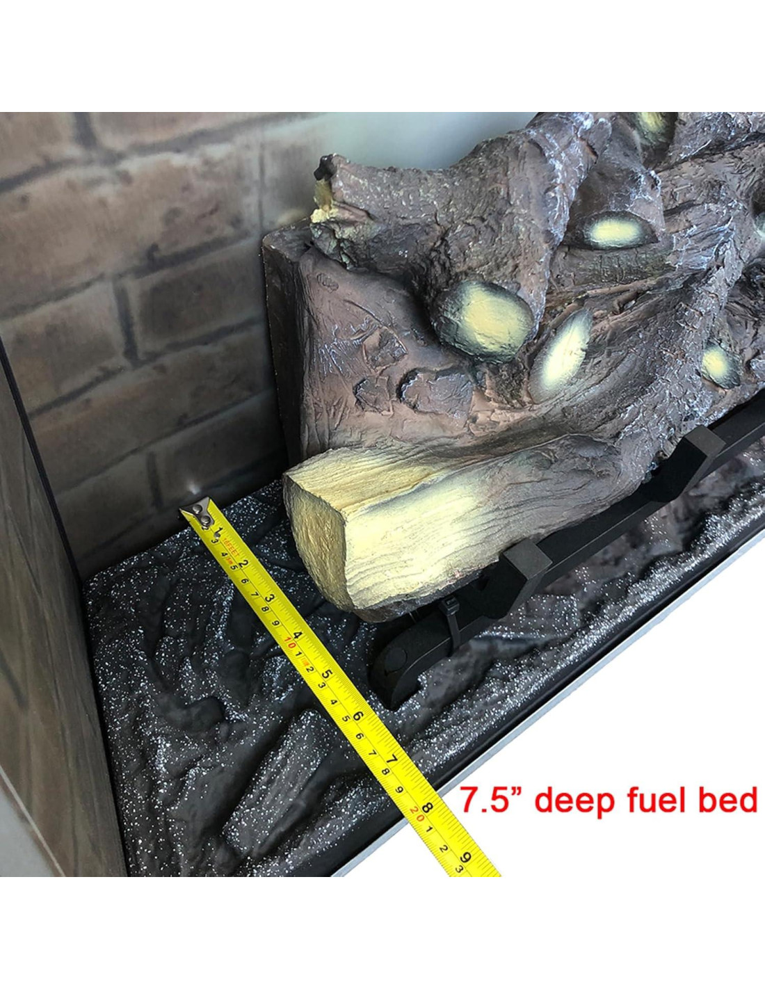 La apariencia clásica y realista de troncos parpadeantes, llama viva, sonido de crepitación y ladrillo falso hacen que el fuego se vea como una verdadera chimenea de leña o gas. Los efectos de llama se pueden usar con o sin calor, puedes usar el calentador durante la temporada de invierno y solo la llama para otras temporadas como decoración. Varios detalles enumerados a continuación para más información útil que puedas necesitar. Otros detalles que puedes encontrar en la sección de 'Especificaciones Técnicas' llamada 'Hoja de Especificaciones' (incluyendo dimensiones del producto y del marco) y 'Guía del Usuario' (un resumen breve para preguntas y respuestas de clientes) y 'Manual del Usuario'. Tronco de resina realista que mide 17.8 cm de alto y 19.1 cm de profundidad se sitúa sobre la rejilla encima de la cama de brasas.