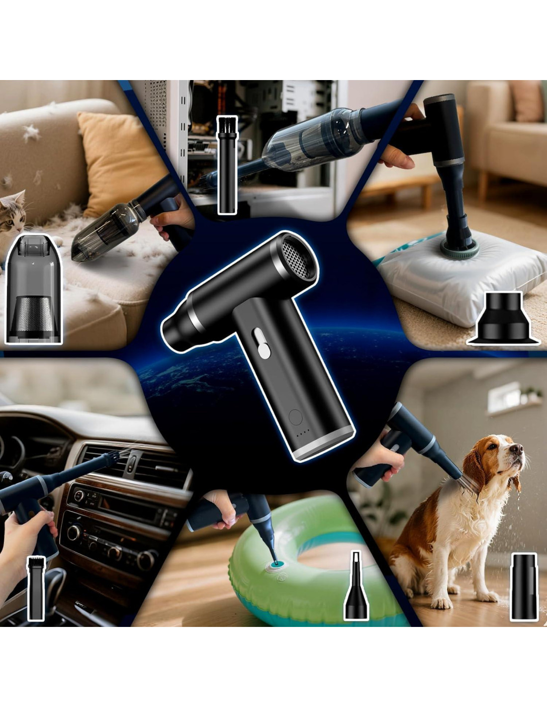 - Motor Sin Escobillas de Alta Velocidad 150,000RPM: Este soplador de aire eléctrico cuenta con un potente ventilador turbo mini de 150,000RPM, proporcionando una fuerte presión de aire para una limpieza profunda. Hasta 5500PA de succión potente, ya sea que estés soplando polvo o aspirando suciedad, este flujo de aire de alta velocidad asegura un rendimiento rápido y completo