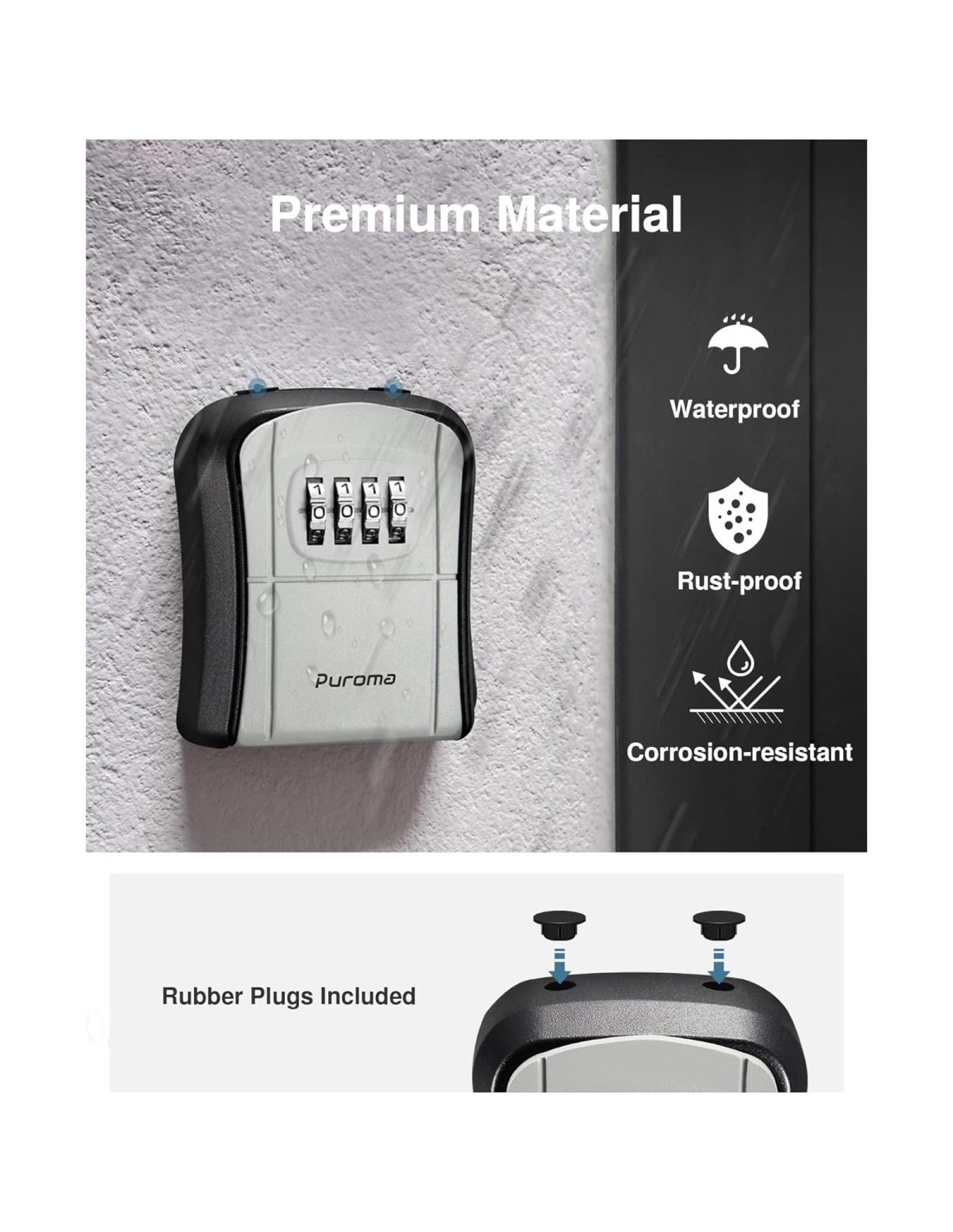- Caja de Seguridad Robusta: La caja de almacenamiento de llaves Puroma está hecha de aleación de aluminio de alta calidad y acero para mantener tus llaves seguras. A prueba de óxido, resistente a cortes y efectiva contra daños violentos causados por golpes, serruchos o fuerza.