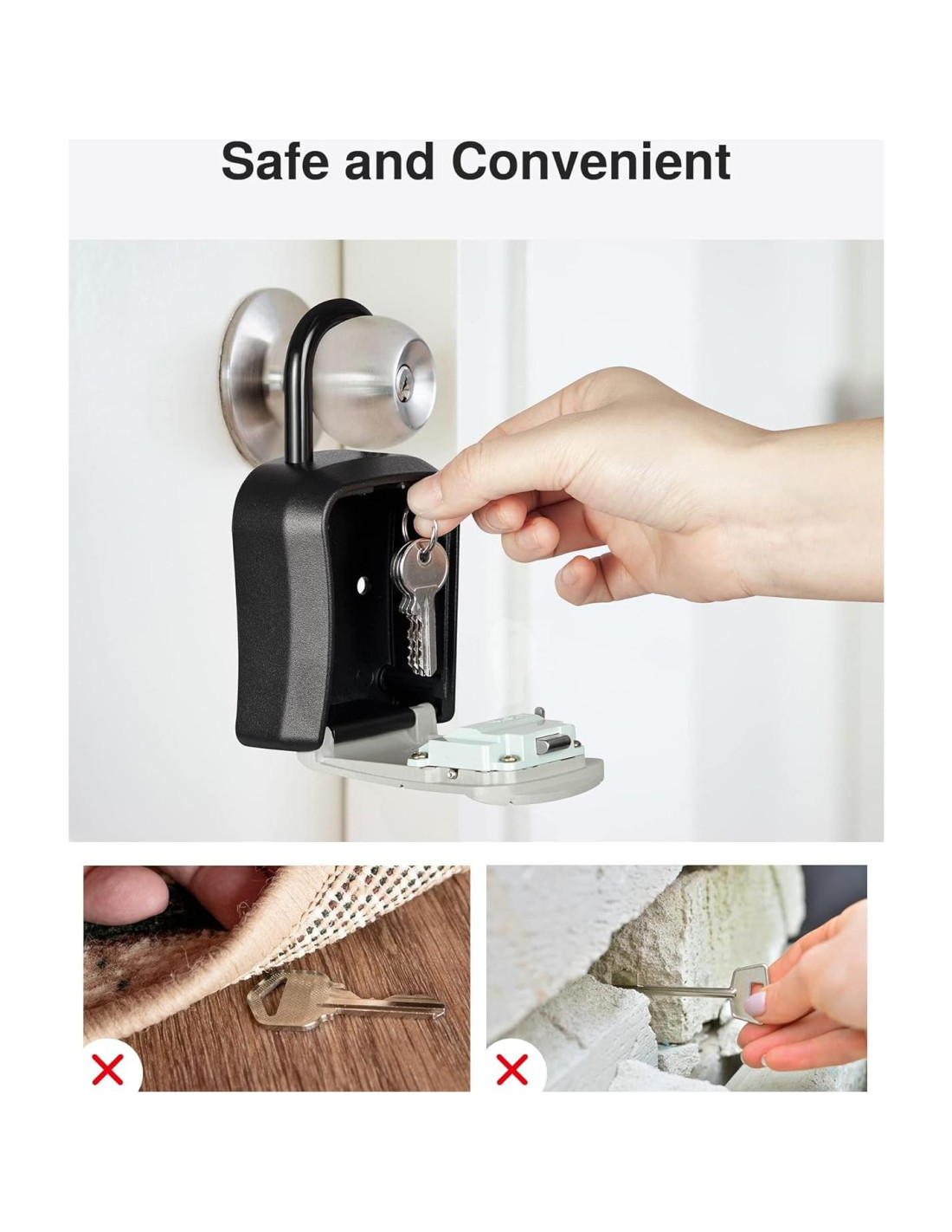 - Amplia Aplicación: Esta caja de cerradura de llaves es a prueba de óxido, resistente a la corrosión y a prueba de clima, adecuada para el almacenamiento de llaves en casa, oficina, garaje, entrada de apartamento y casas de alquiler. Perfecta para agentes de Airbnb, limpiadores, cuidadores de mascotas, etc.