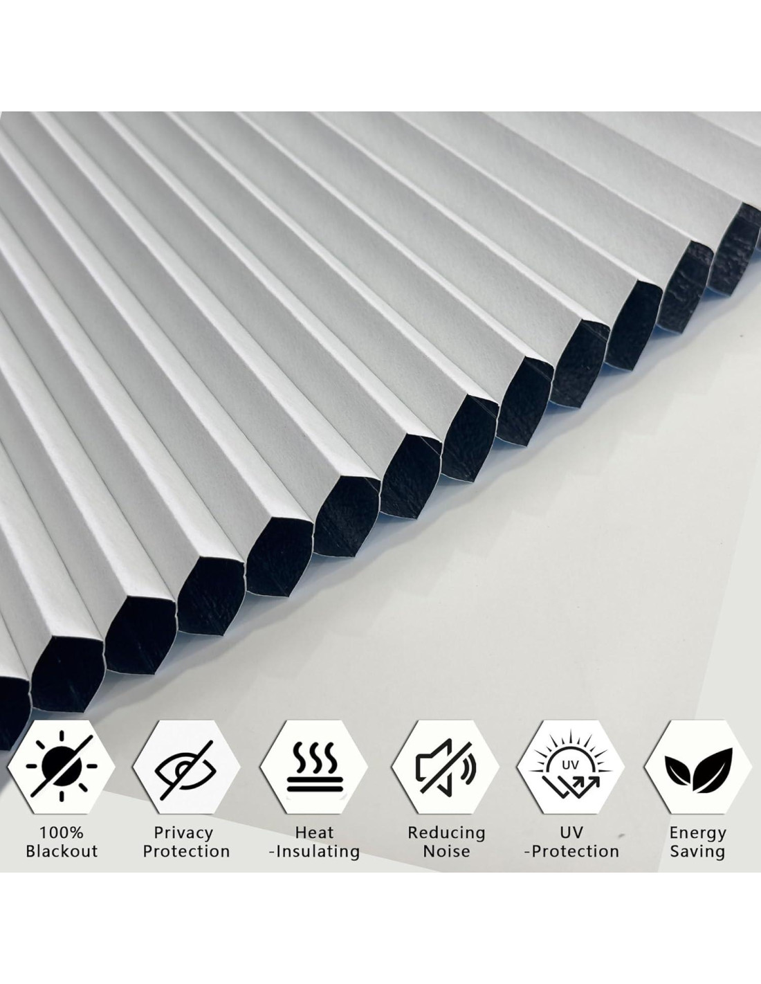 - Ecológico: La estructura de panal es mejor que la cortina plisada para bloquear los rayos UV, el calor y el ruido.