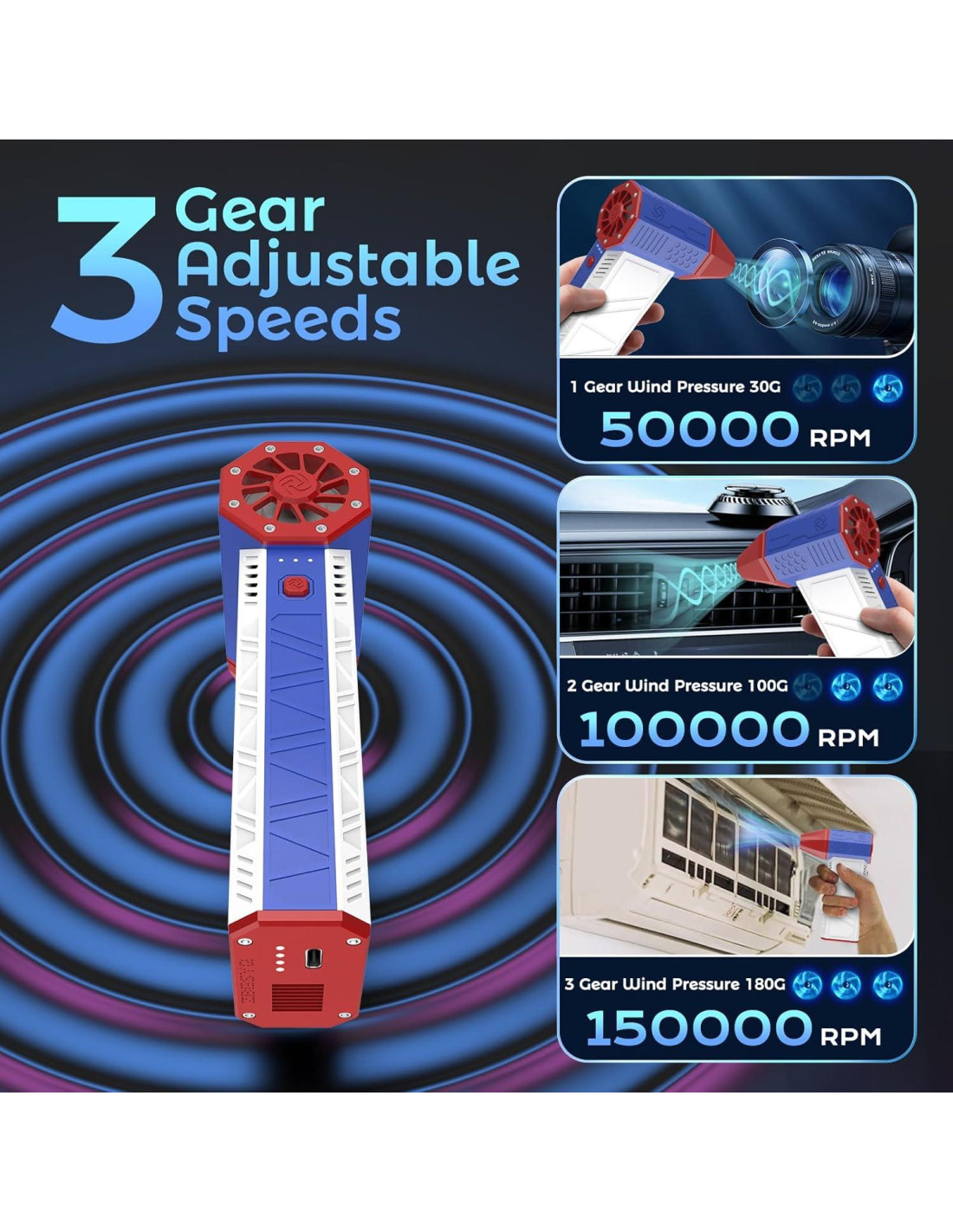 - Potente Soplador de Aire Eléctrico 130000RPM El soplador de aire eléctrico COSANO es compacto, ligero y puede rotar hasta 130,000 RPM. Este mini soplador de aire puede generar un flujo de aire a una velocidad máxima de 52m/S. Seca superficies rápidamente y proporciona un flujo de aire impresionante. Además, tiene 3 velocidades ajustables, adecuadas para cualquiera de tus necesidades.