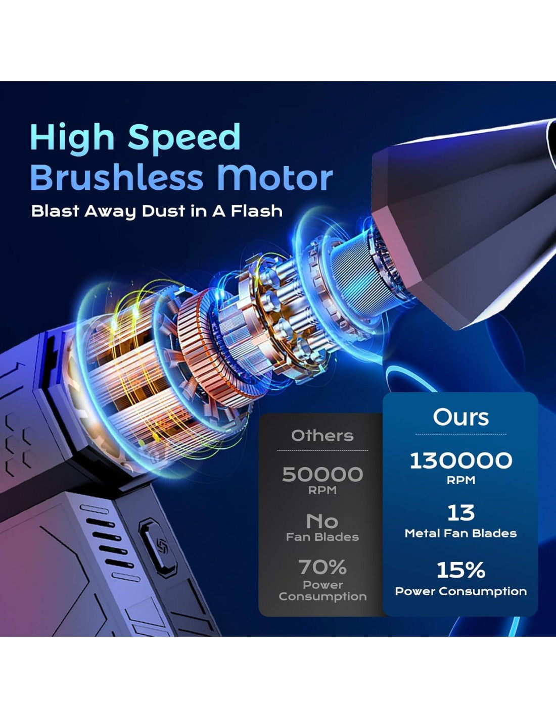 - Boquilla Magnética y Mejor Eficiencia El mini soplador de aire inalámbrico está equipado con una boquilla magnética que concentra el flujo de aire para un secado más rápido. Puede eliminar rápidamente el polvo y la suciedad de cada rincón, asegurando que las superficies estén impecables y sin rayas. Di adiós a la tediosa limpieza o secado del polvo.