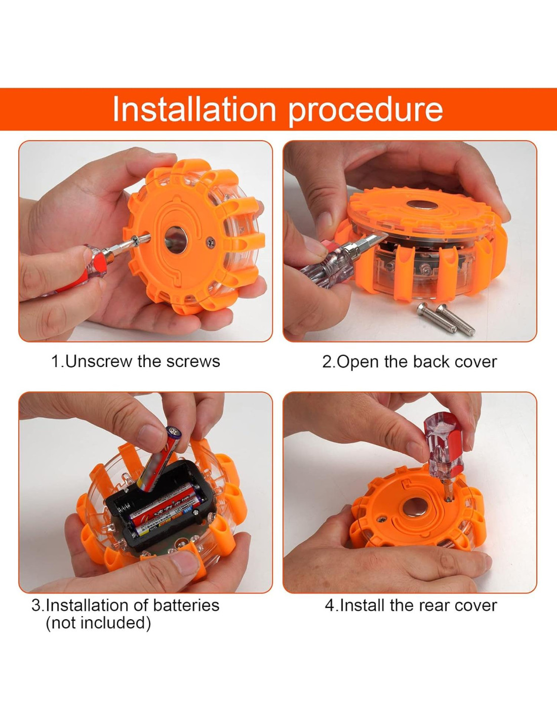 - [Brindando protección integral de seguridad para tu automóvil] En caso de un accidente acuático, vuelco o emergencia similar, estas luces de advertencia LED se pueden usar para situaciones de angustia, equipo de seguridad esencial para emergencias de automóviles, camiones, barcos, buques o motocicletas. Un kit de seguridad imprescindible para diferentes señales de rescate SOS en emergencias marítimas y en carretera. También se pueden usar para actividades como acampar y hacer senderismo, advertencias de tráfico de vehículos fallidos, marcas de carretera de la policía, etc.