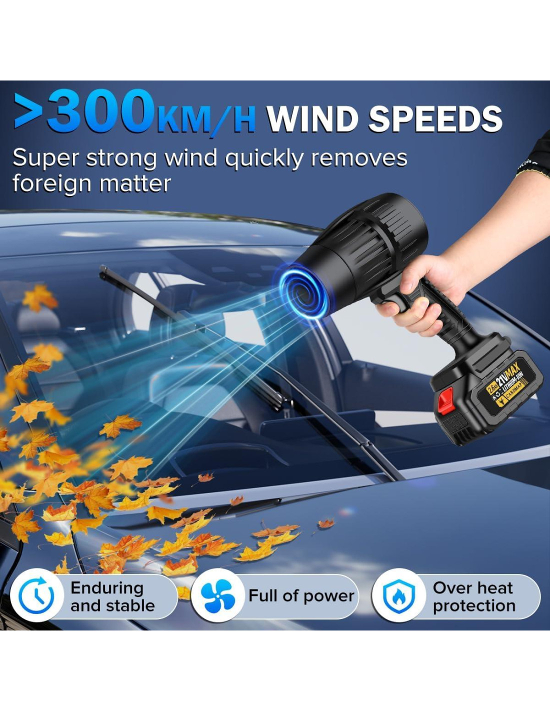 - [Motor Avanzado] Los Sopladores de Hojas están diseñados con un motor de turbina sin escobillas de alta velocidad, generando un flujo de aire de alta velocidad de más de 50 M/S.
