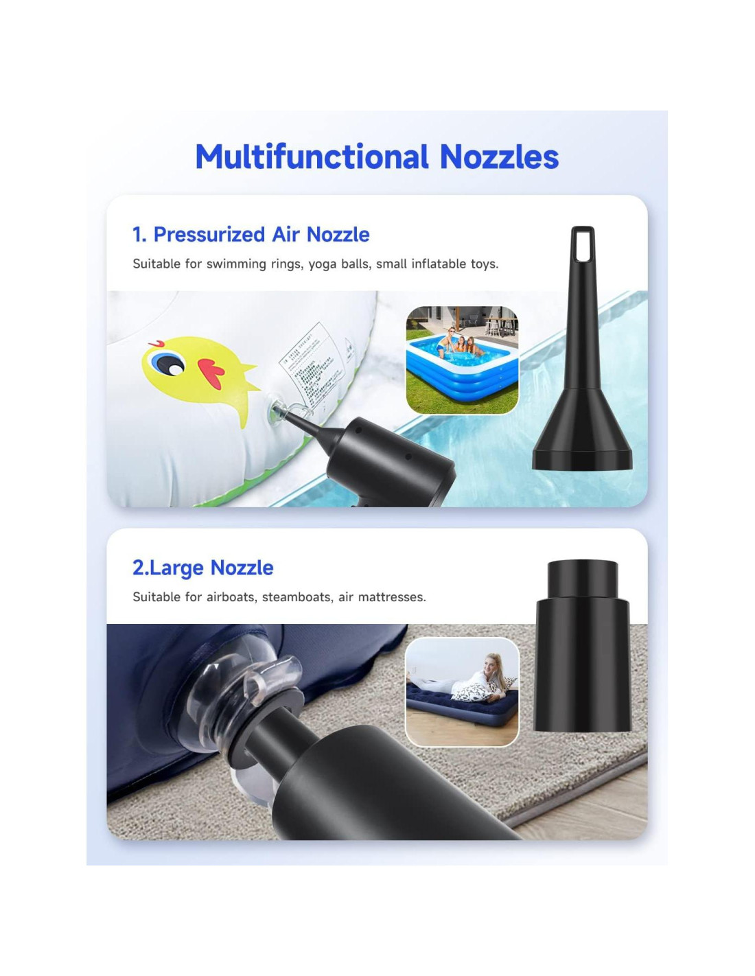 - Múltiples usos: El aire comprimido viene con 5 juegos de boquillas. Adecuado para la eliminación de polvo de cajas de computadoras, teclados, coches, ventiladores, ventanas de lirio, etc.