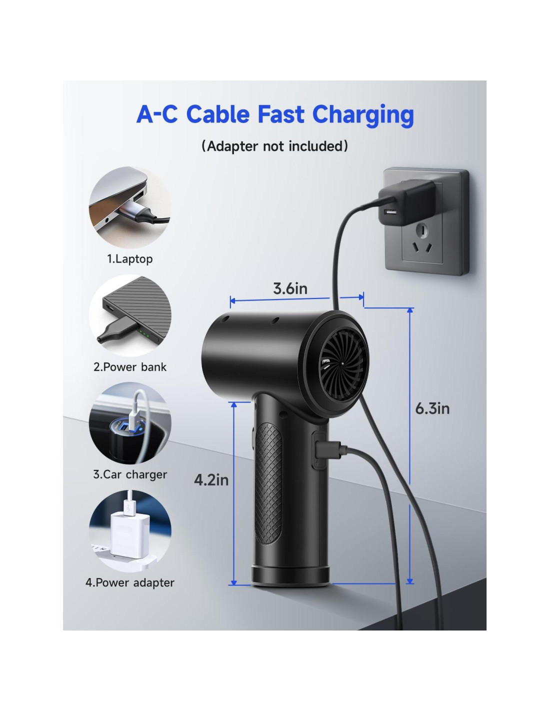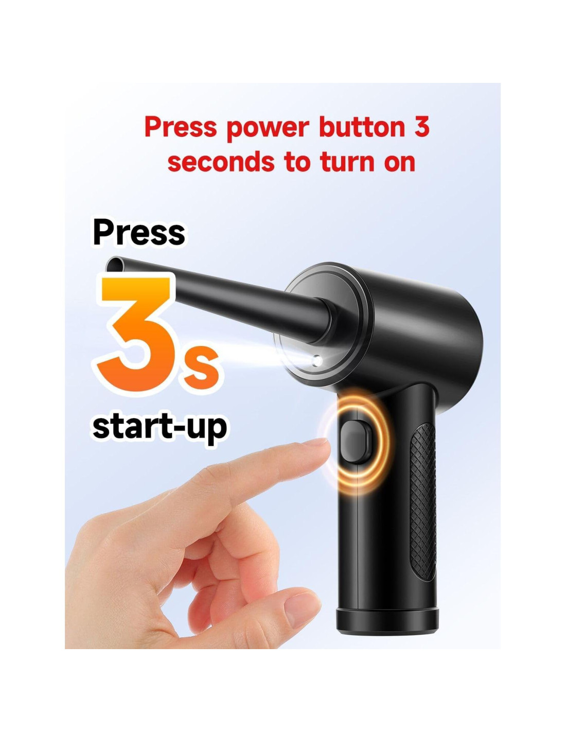- Modos de velocidad ajustables de 3: El soplador de aire está equipado con un motor mejorado de 51000 RPM, que proporciona flujo de aire para una limpieza profunda. Presiona 3 segundos y mantén encendido, haz clic en el botón, puedes cambiar entre 3 modos de flujo de aire (33000 RPM, 38000 RPM, 51000 RPM) para la limpieza de diferentes equipos, de modo que el polvo no tenga dónde quedarse