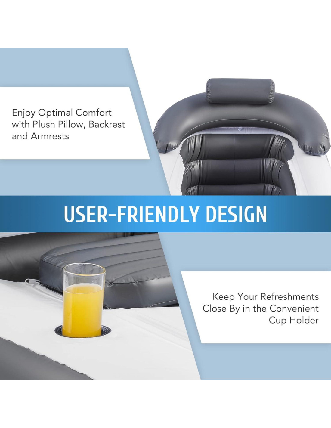 - AMPLIA APLICACIÓN: Esta bañera inflable se recomienda para individuos de hasta 6 pies (1,85 m) de altura y que pesen menos de 220 lbs (100 kg); asegúrate de que el espacio donde planeas colocar la bañera tenga dimensiones adecuadas de 63 x 33 x 29.1 in. (160x84x74 cm) antes de realizar tu compra