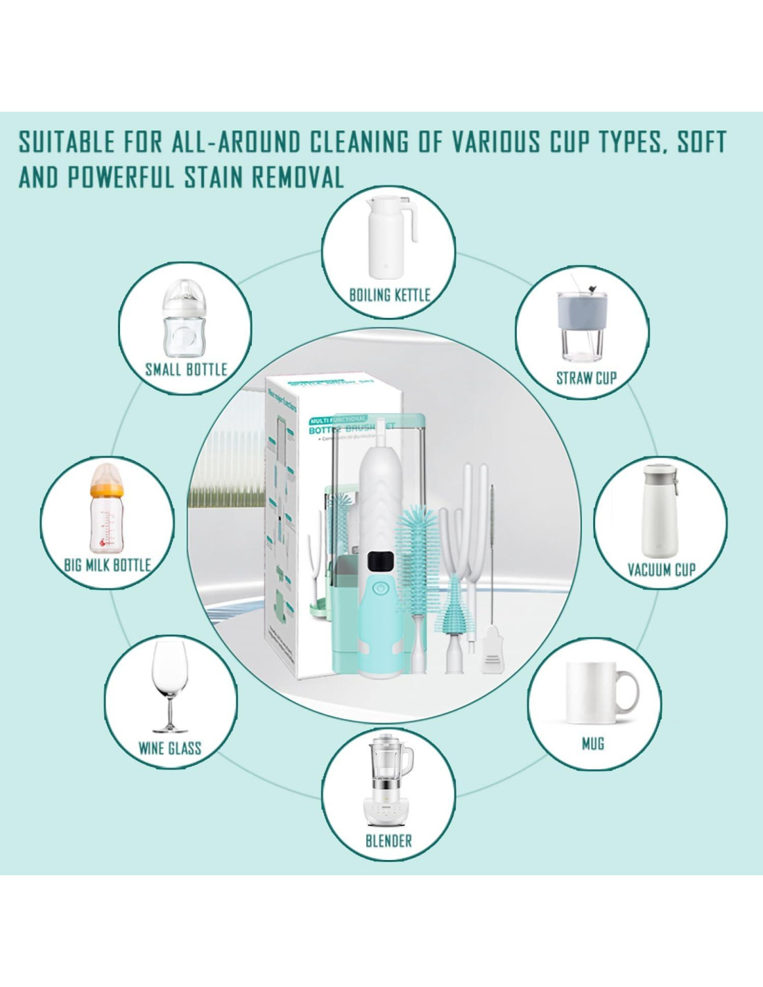 - Limpiador de Cepillo de Botellas Eléctrico - Cerdas Giratorias de Alta Velocidad de 360