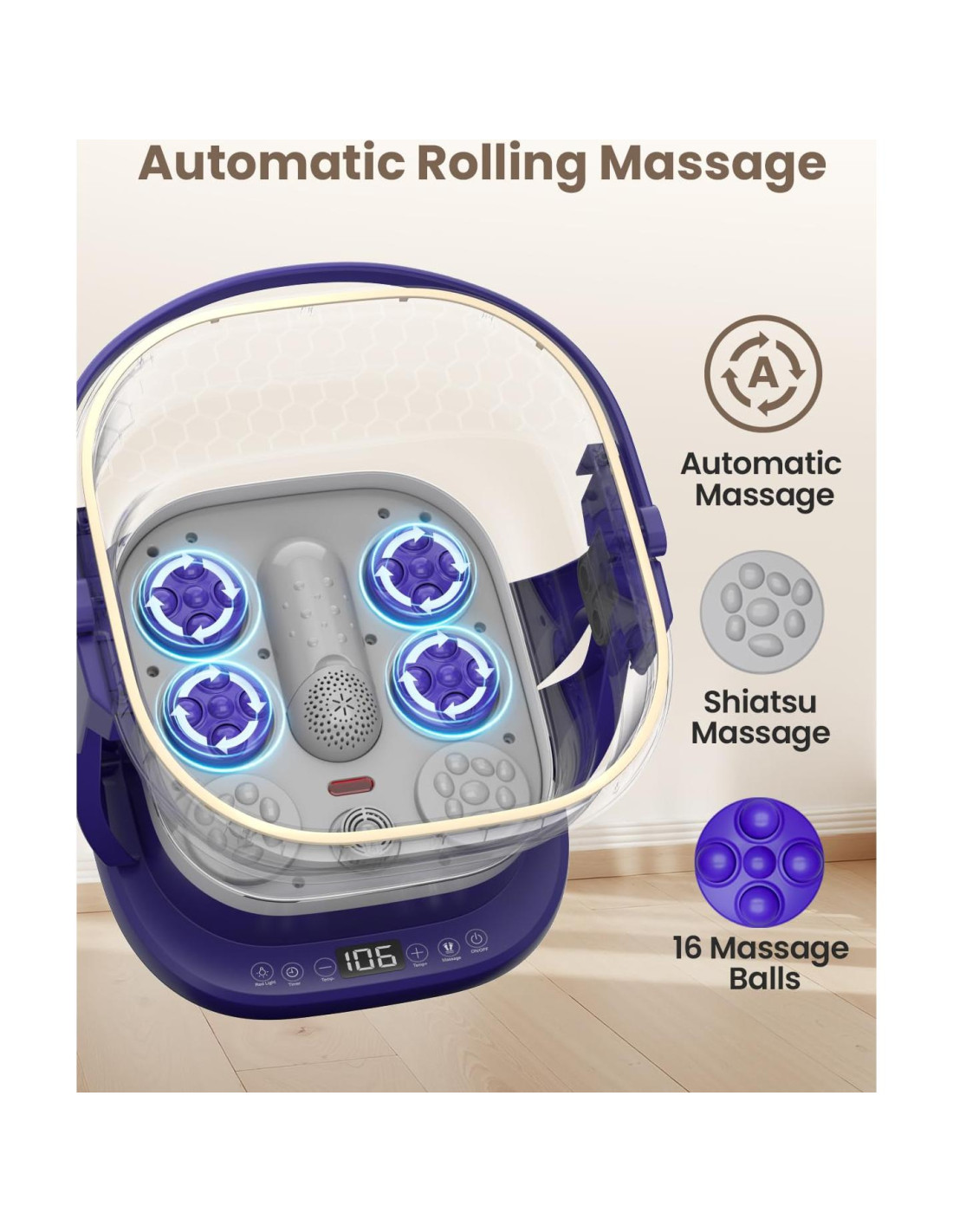 - 16 bolas de masaje con acupresión dirigida: Este masajeador de baño de pies con calor cuenta con 16 bolas de masaje Tai Chi y 2 nodos de acupresión que estimulan puntos de presión clave en los pies. Alivia el dolor, mejora la circulación y relájate profundamente después de largos días o entrenamientos.