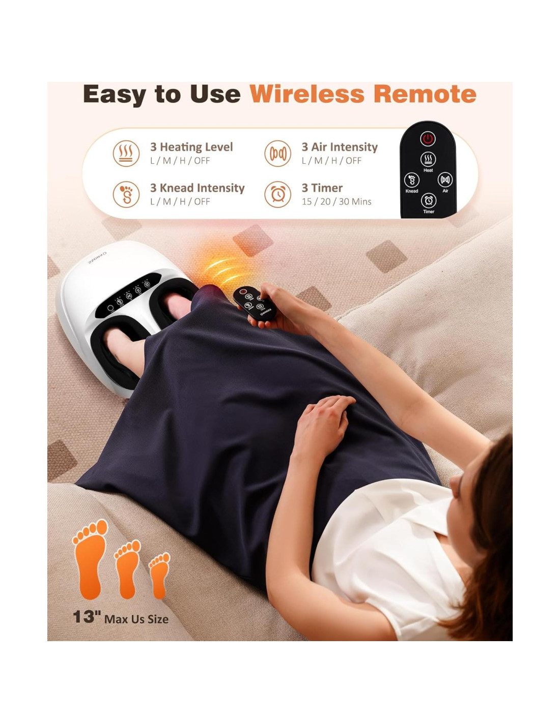 - [Masajeador de Pies Multifuncional] El masajeador de pies Shiatsu cuenta con configuraciones personalizables - 3 intensidades de amasado/presión de aire (Apagar/Bajo/Medio/Alto), 3 niveles de calor y 3 opciones de temporizador (15/20/30 minutos) - para crear tu experiencia de masaje ideal adaptada a tus necesidades. Cada función se puede encender/apagar individualmente o en combinación. Se adapta a pies de hasta talla 13 para hombres.