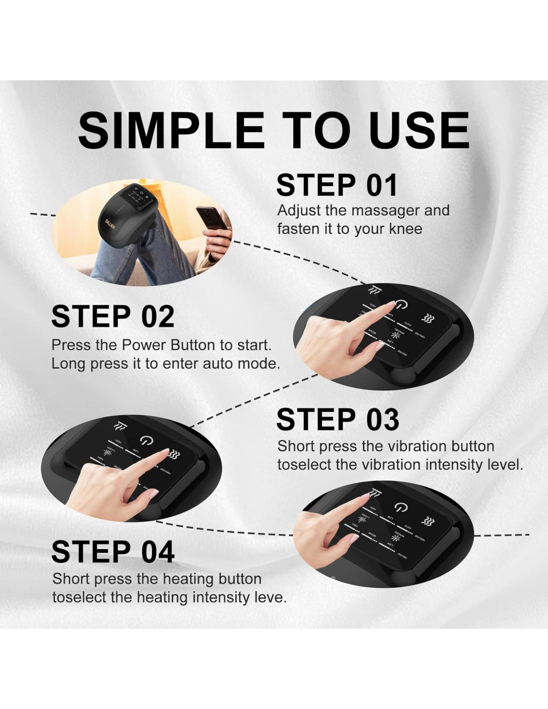 - Diseñado ergonómicamente con correas ajustables: Este masajeador de rodilla cuenta con una correa de velcro diseñada ergonómicamente que es ajustable de manera segura y puede envolver completamente tus rodillas. Crea experiencias personalizadas a través de configuraciones ajustables de vibración y temperatura.