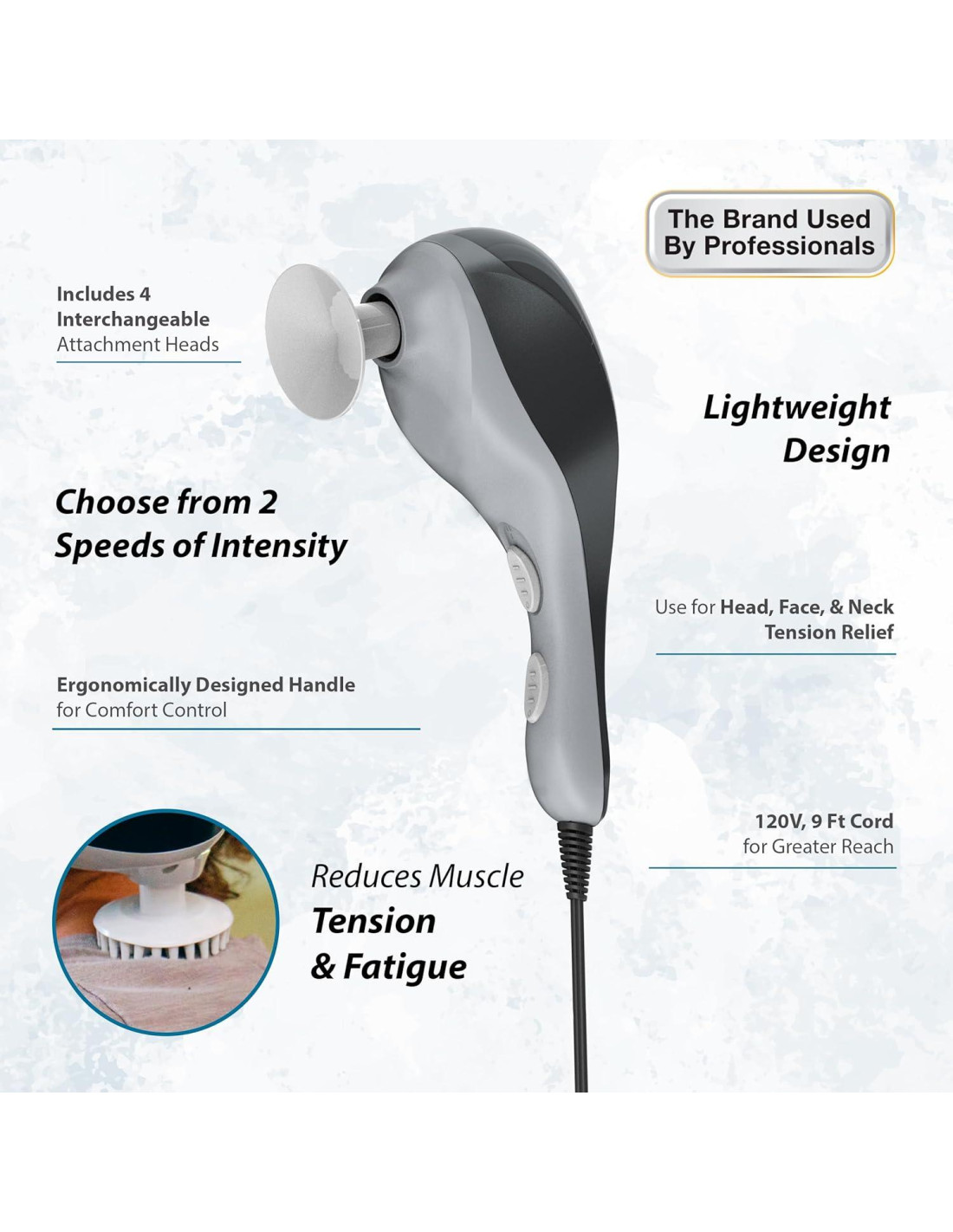 - Diseño Ergonómico: Pequeño y ligero (1.6 lbs / 0.73 kg) con un cable largo de 9 pies (2.74 metros), perfecto para aliviar la cara, cuello, hombros y cabeza. Ideal para estrés, dolor muscular, rigidez, dolor crónico y más.