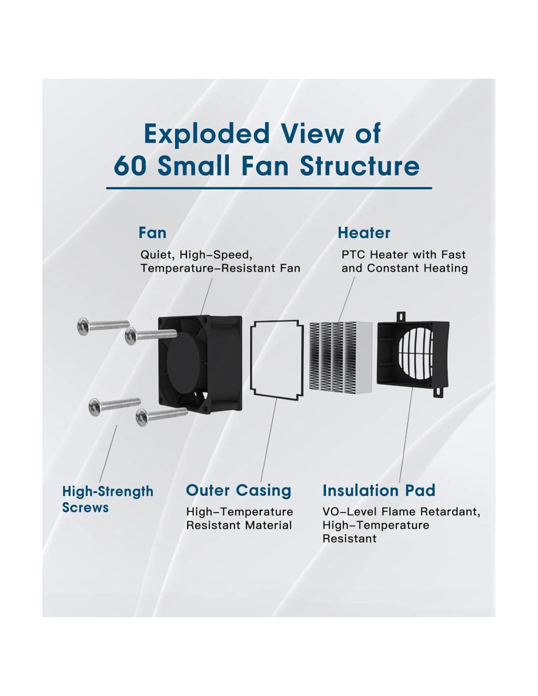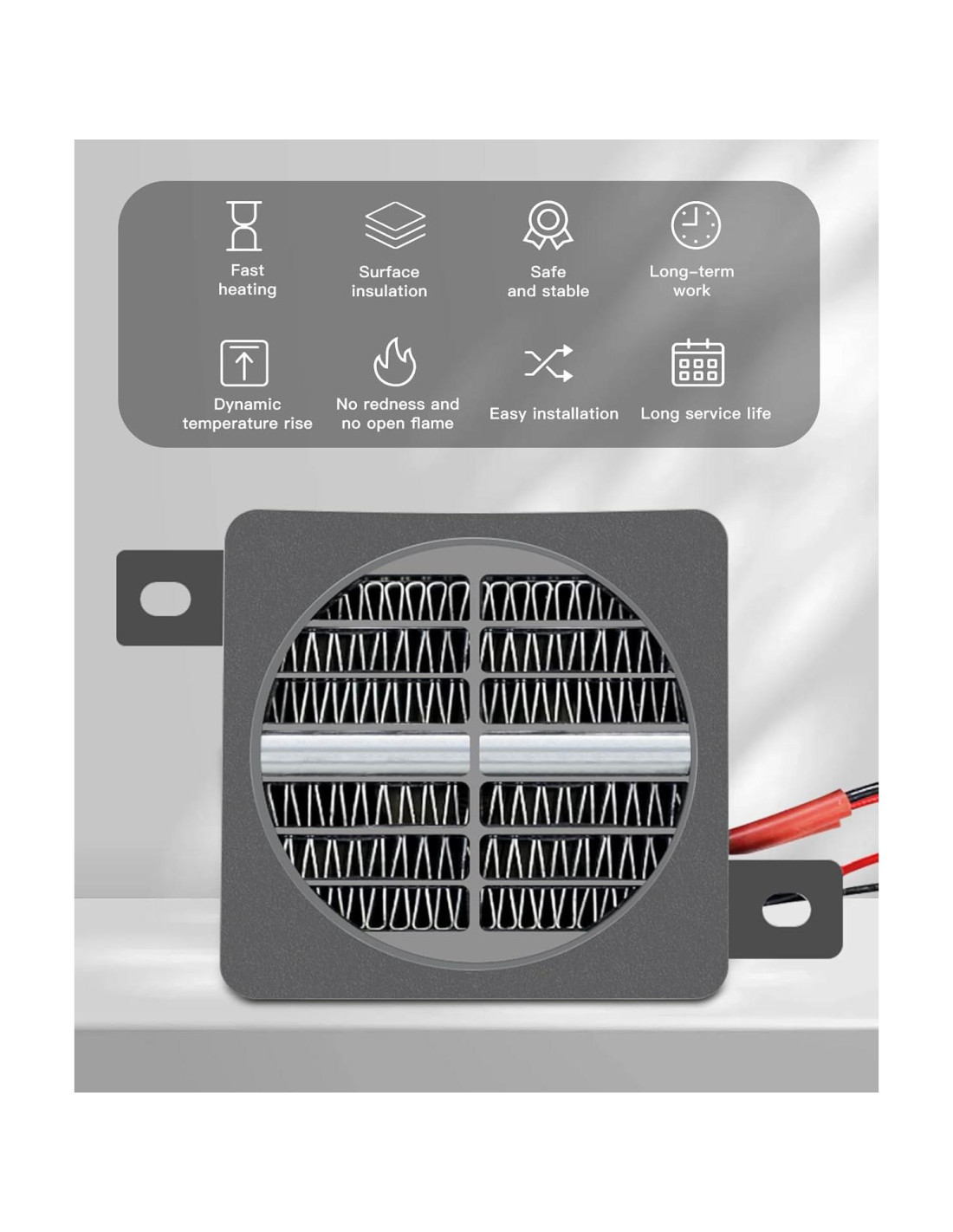 - Rendimiento duradero: Diseñado para operación continua, el calentador de ventilador PTC puede encenderse y apagarse repetidamente, ofreciendo más de 10,000 horas de rendimiento de calefacción confiable.