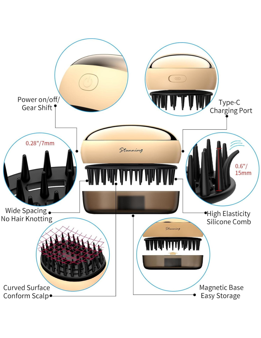 - Cuidado del Cuero Cabelludo Revolucionario. Preparándose para entrar en una nueva era de masajeador de cabeza. El nuevo masajeador de cuero cabelludo proporciona una experiencia cómoda más allá del masaje con los dedos humanos a través de cerdas de silicona suaves que vibran. Active la rutina de cuidado del cabello de su cuero cabelludo a través de vibraciones suaves o estimulantes, y proporcione una limpieza profunda, adecuada para todos los tipos de cuero cabelludo y cabello.