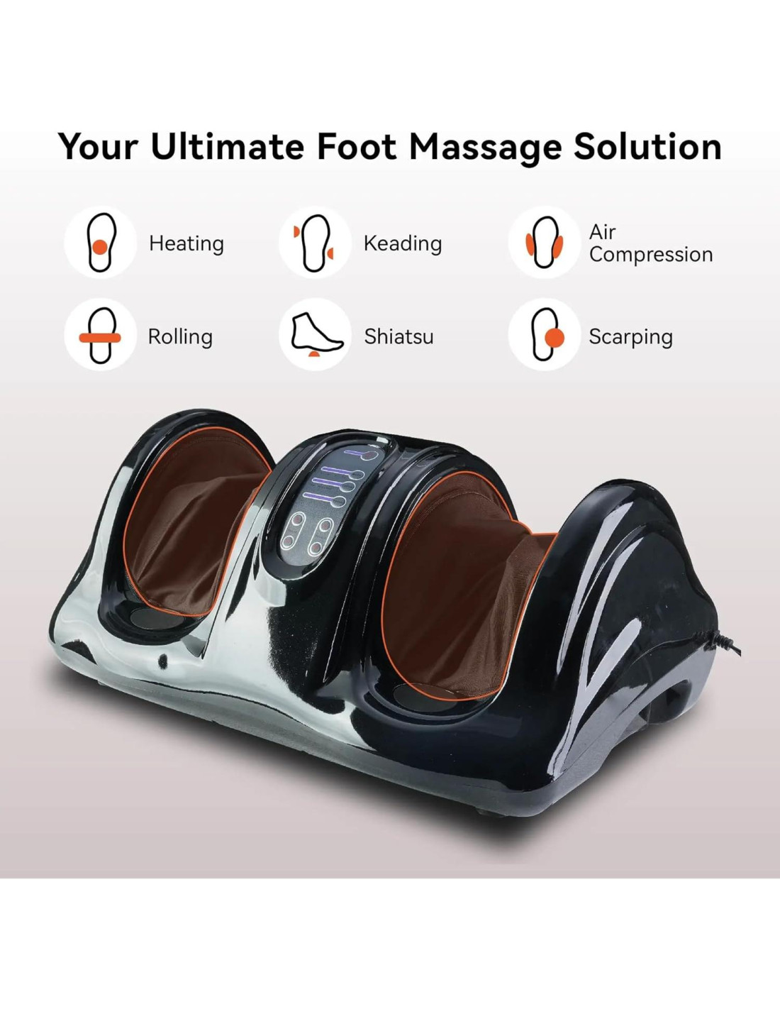 - [Experiencia de masaje personalizable] Elige entre 7 programas automáticos o cambia a modo manual con 3 niveles de velocidad ajustables para crear un masaje personalizado. Este masajeador eléctrico de pies proporciona terapia de tejido profundo para pies, pantorrillas, tobillos y piernas, perfecto para después del trabajo, entrenamientos o largas horas de estar de pie.