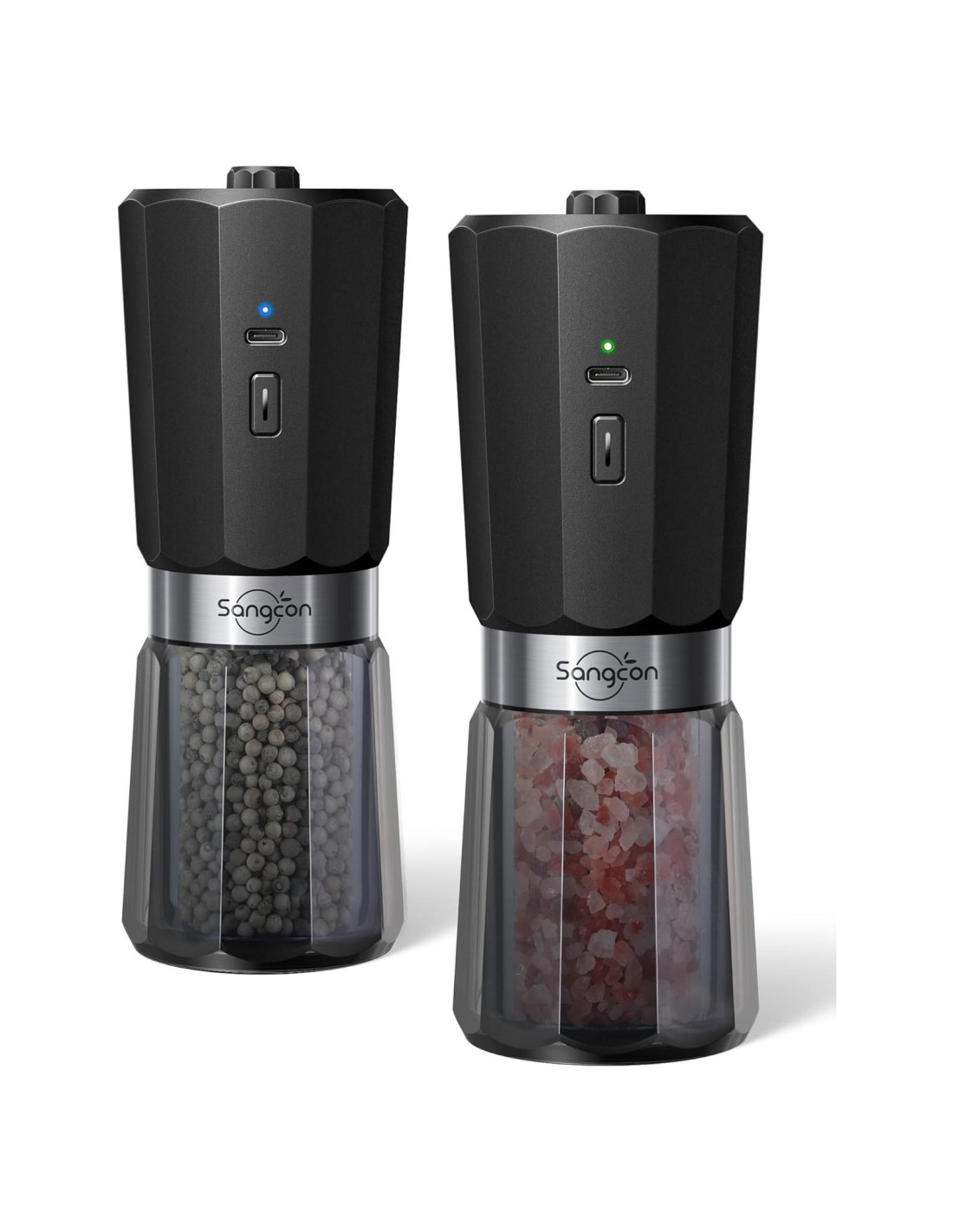 - [BATERÍA RECARGABLE DE 800MAH] Equipado con una batería recargable de 800mAh, el molinillo eléctrico de pimienta Sangcon proporciona un rendimiento duradero, perfecto para cocinas domésticas. Una sola carga USB-C dura hasta 2 meses de sazonado diario. No más preocupaciones sobre la duración de la batería mientras cocinas, así puedes concentrarte en la preparación de las comidas. Además, el juego de molinillos de sal y pimienta recargables cuenta con un motor de alta calidad mejorado diseñado para un molido eficiente y constante, con una vida útil más larga que los motores estándar.