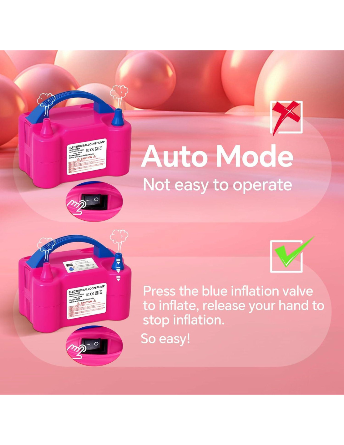 - AHORRO DE TIEMPO: El modo completamente automático permite una fácil inflación de globos, ahorrando tiempo y esfuerzo