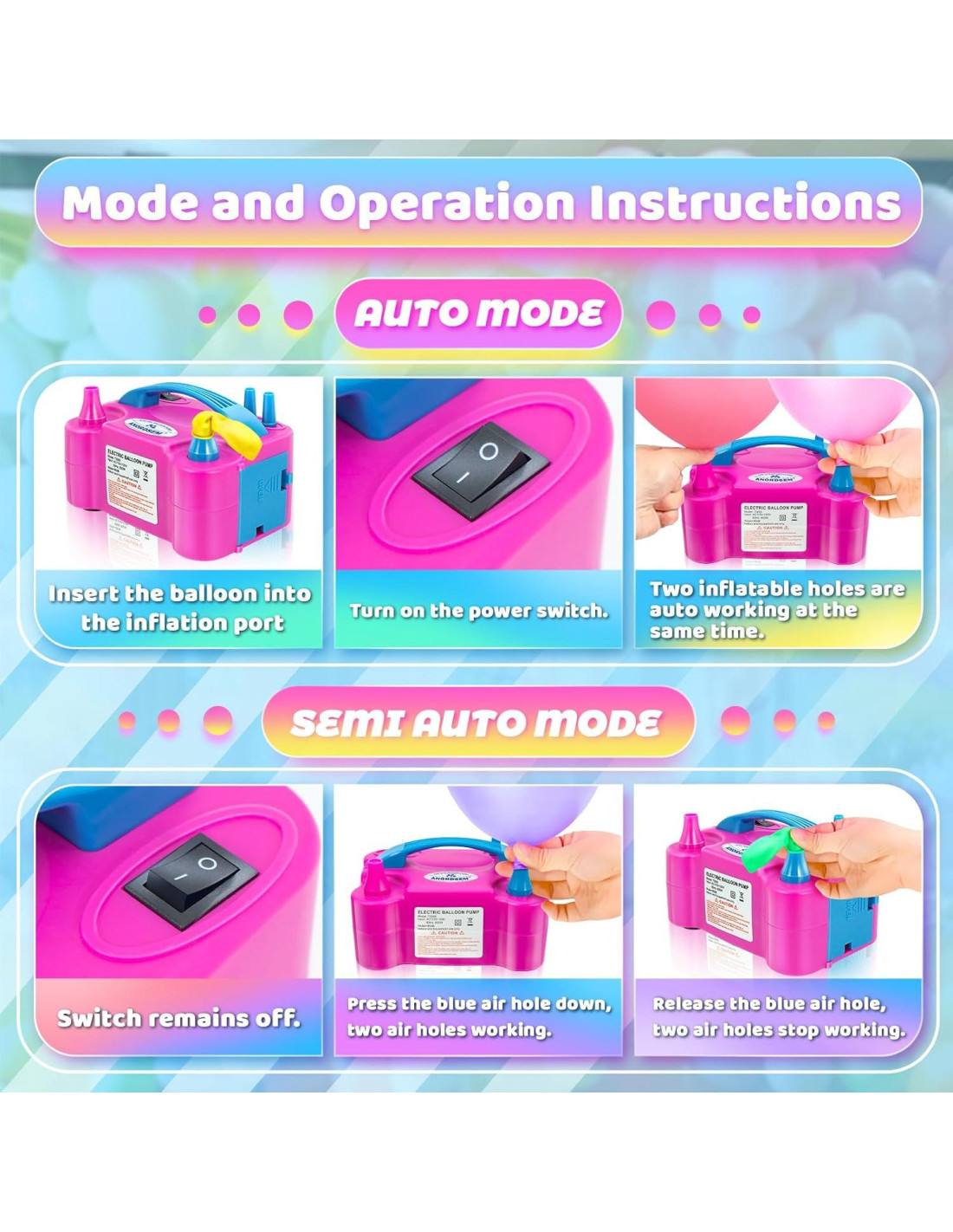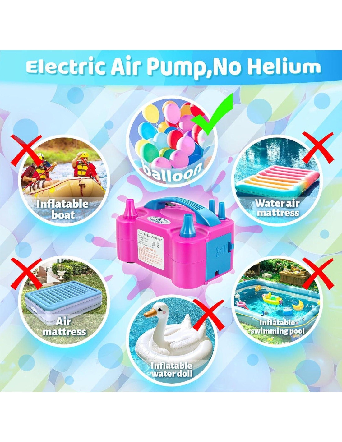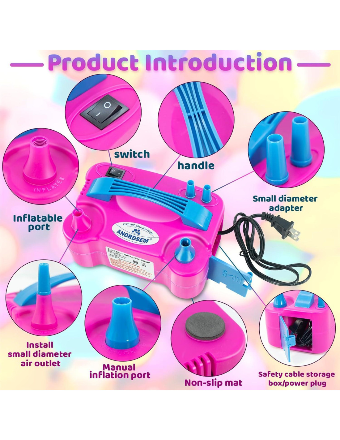 - Bomba de Aire Eléctrica: Adoptando tecnología de motor avanzada, puede llenar el globo con aire a una velocidad muy rápida, lo que ahorra mucho tiempo y energía. Adecuado para padres, niños, planificadores de eventos, personas de fiestas, personal de bodas y otras personas