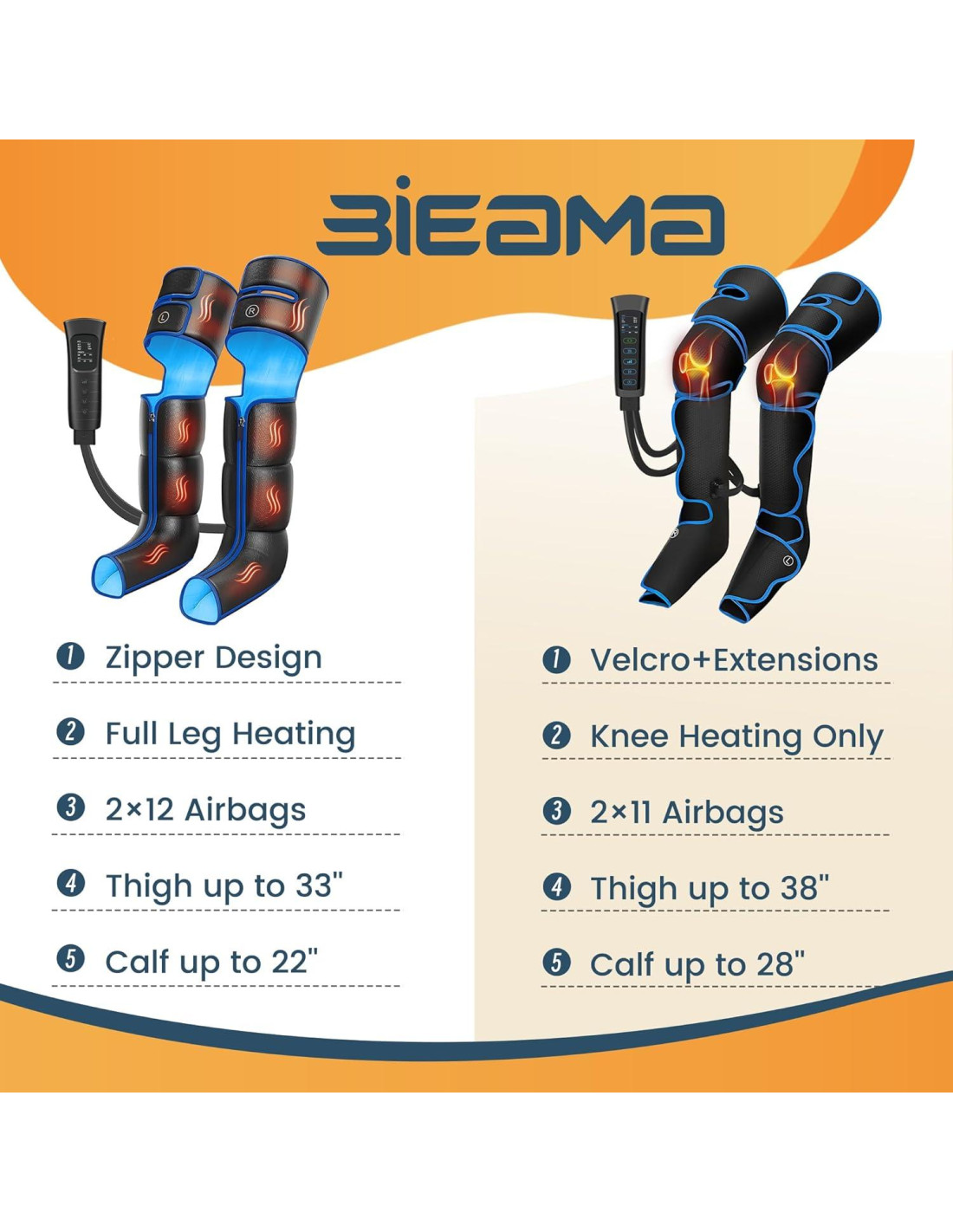 - Masajeador de Piernas Mejorado: 12 bolsas de aire, 6 modos de masaje, 3 niveles de intensidad y 3 configuraciones de calefacción. Elegible para FSA HSA. Proporciona presión dinámica a los pies, pantorrillas y muslos para una mejor circulación y relajación.