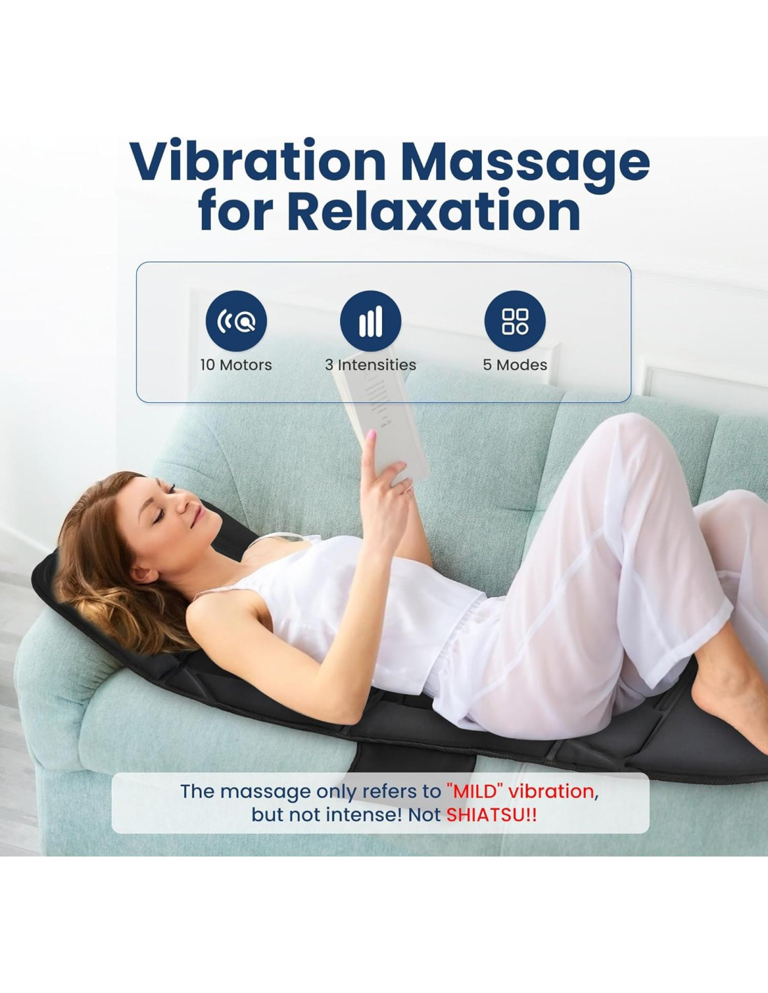 - [Almohadillas de Masaje de Vibración de Cuerpo Completo] La almohadilla de masaje de cuerpo completo Comfier cuenta con 10 motores de masaje, proporcionando un masaje de vibración cómodo. (¡El masaje solo se refiere a vibración SUAVE, pero no intensa! ¡No es SHIATSU! Las vibraciones suaves pueden ayudarte a eliminar la fatiga y relajar enormemente tu cuerpo y mente después de un trabajo o ejercicio prolongado.